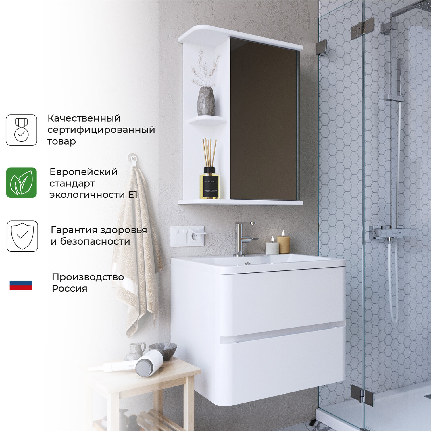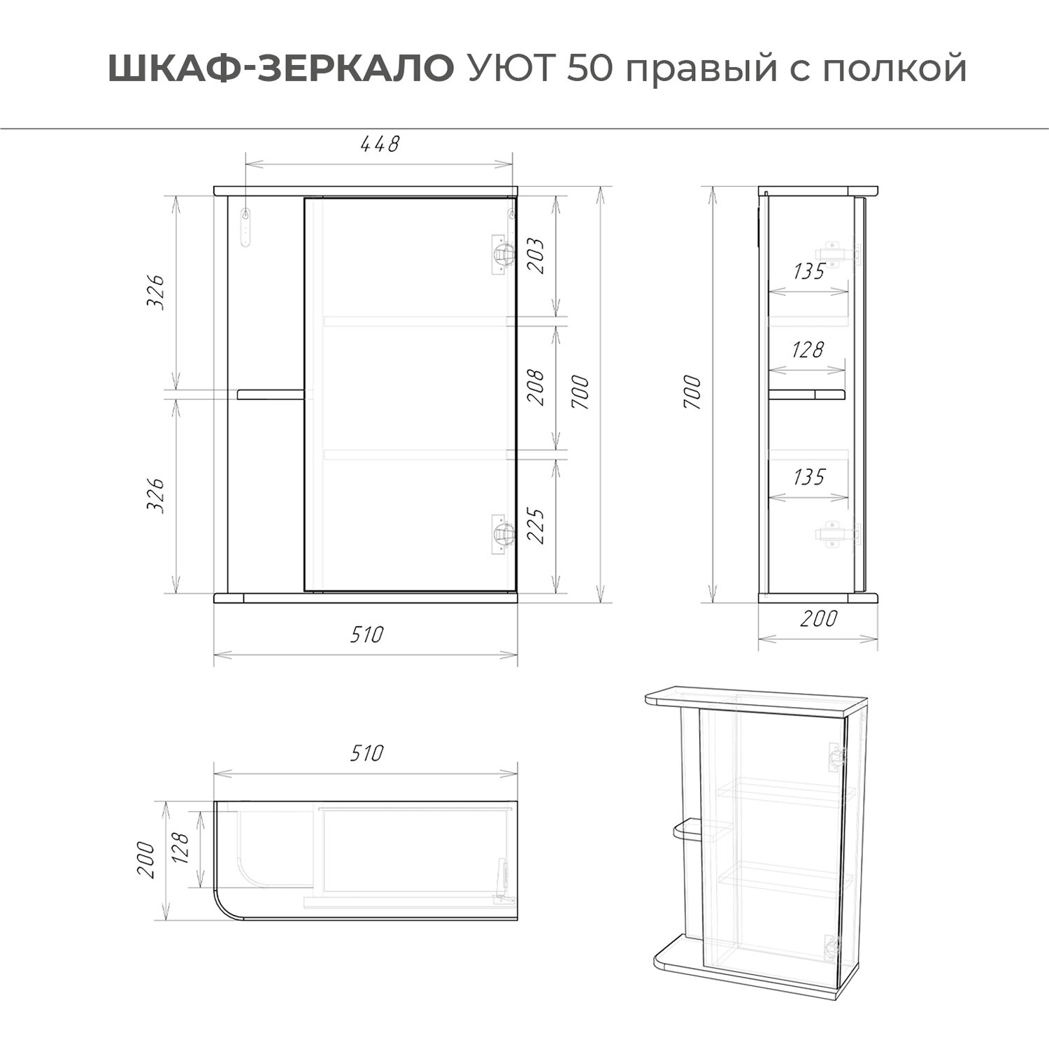 Шкаф зеркало IKA Уют 50 510х200х700 правый с полкой интересное: