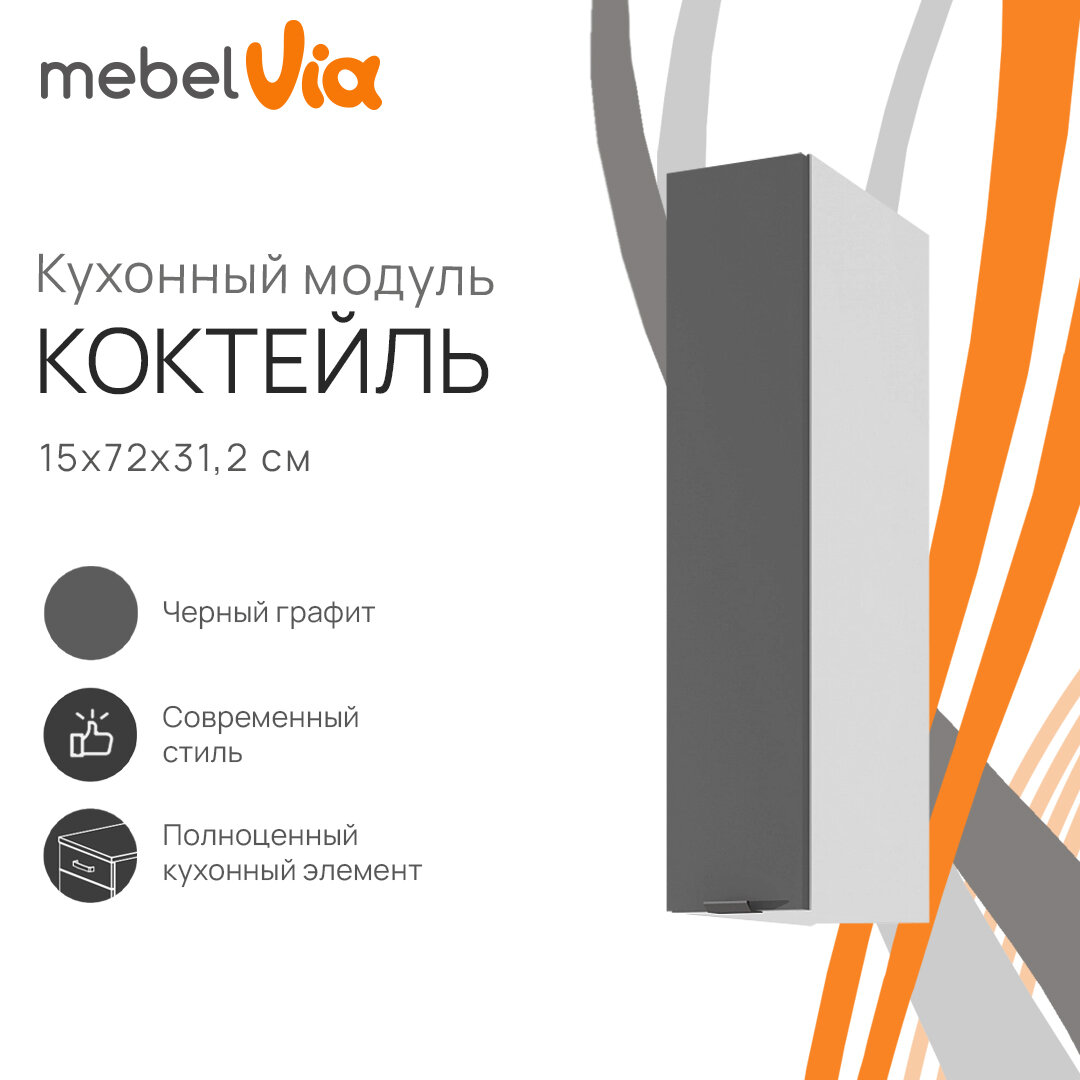 Кухонный модуль шкаф навесной 15 х 72 см Коктейль, черный графит, корпус белый ЛДСП, MebelVia