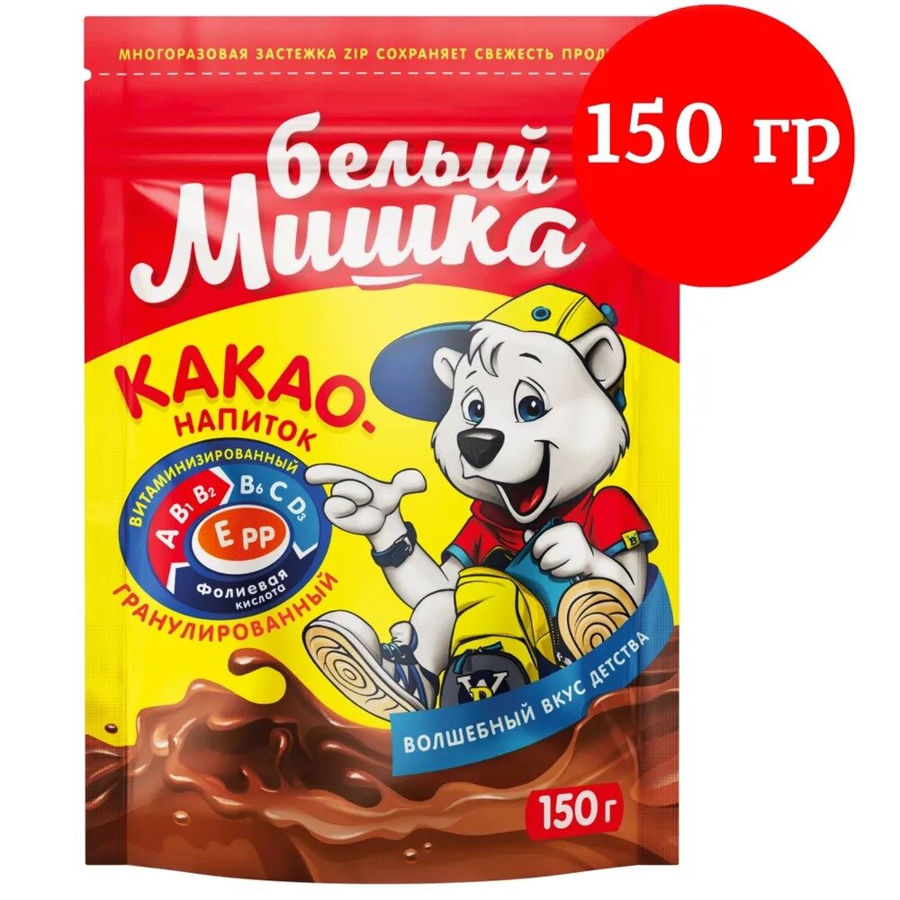 Какао-напиток гранула Белый Мишка / с сахаром / без гмо / быстрорастворимый / 150 г