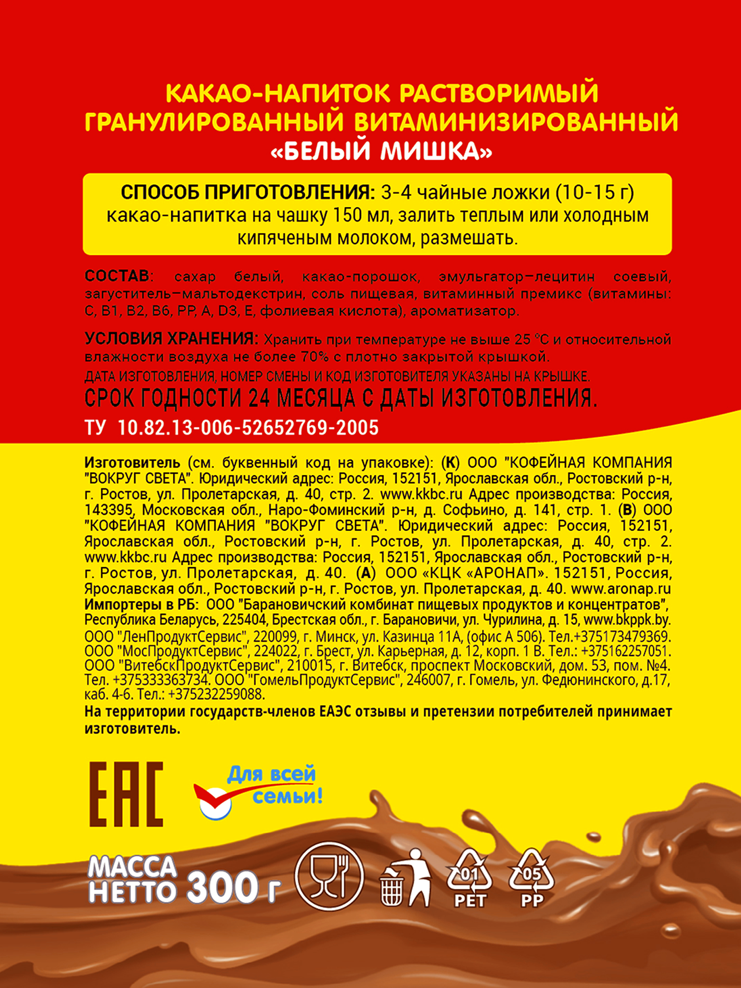 Белый мишка Какао-напиток растворимый гранулированный, 300 г