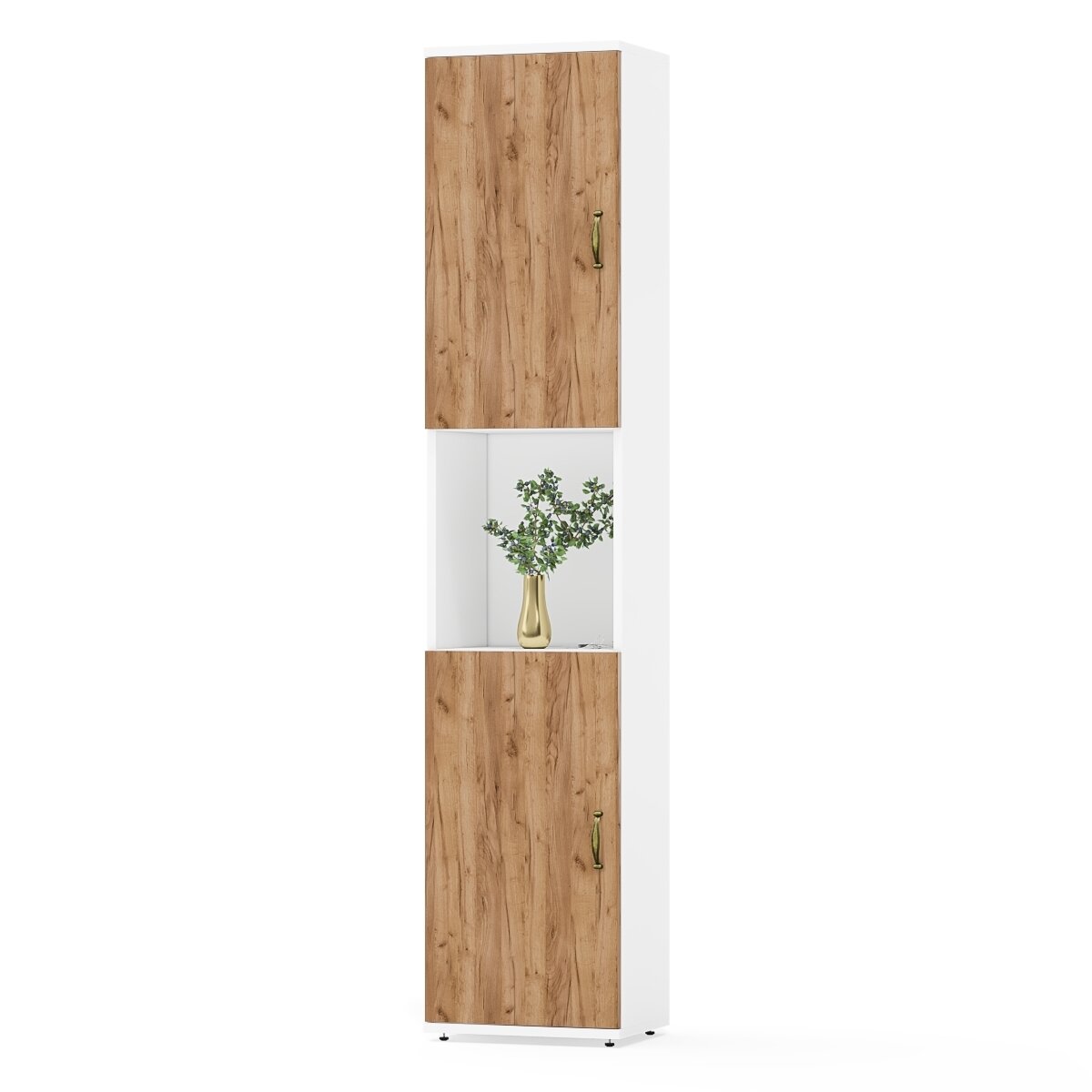 Купить Пенал Мебельный двор Лидер-8 белый шагрень/крафт золото, 40х30х190 см.