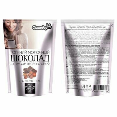 Какао-напиток горячий шоколад молочный 170г со вкусом лесного ореха на фруктозе Фитодар зип муп