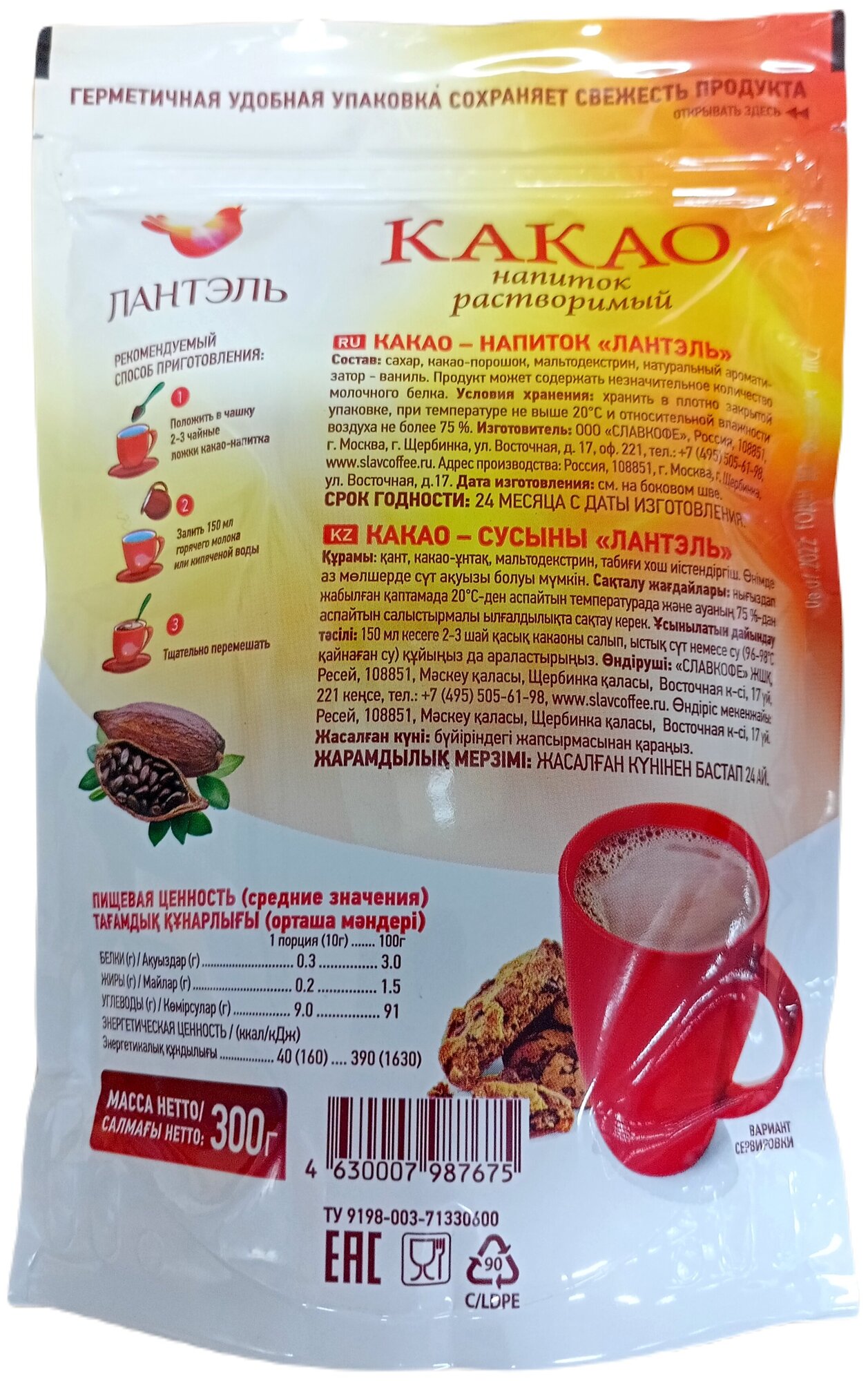 Купить Какао лантэль 300г, растворимое, ZIP-пакет