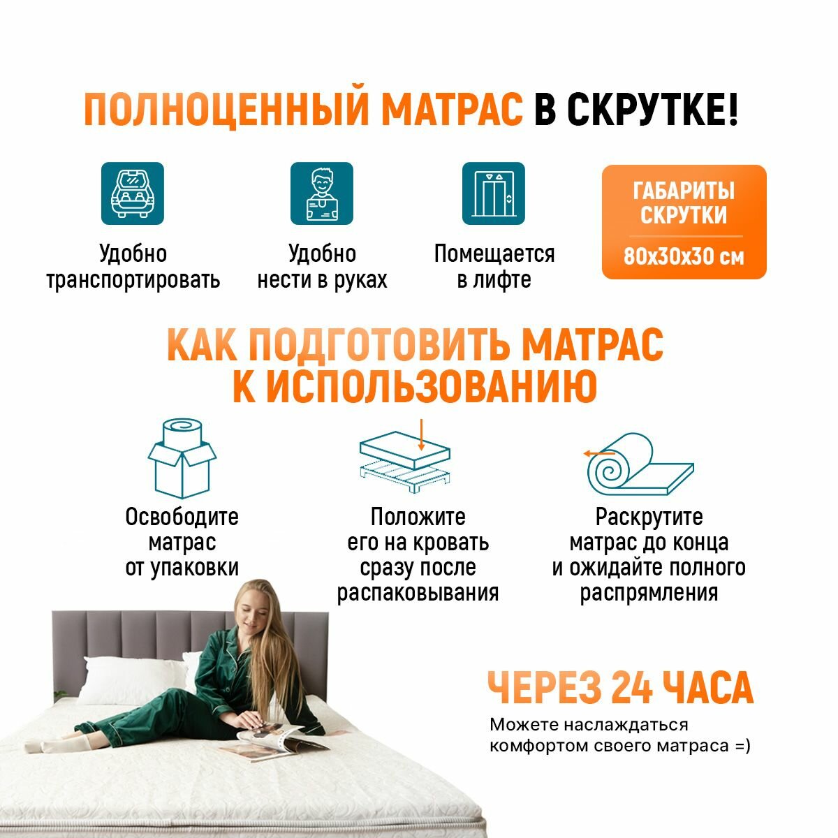 Ортопедический матрас Leroy Hybrid Pro, Независимые пружины, Средне- жесткий, 160х200x24 см