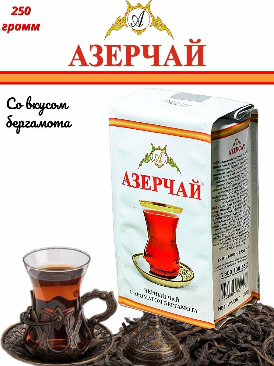 Чай черный Азерчай с бергамотом листовой, 250 г, 6 уп.