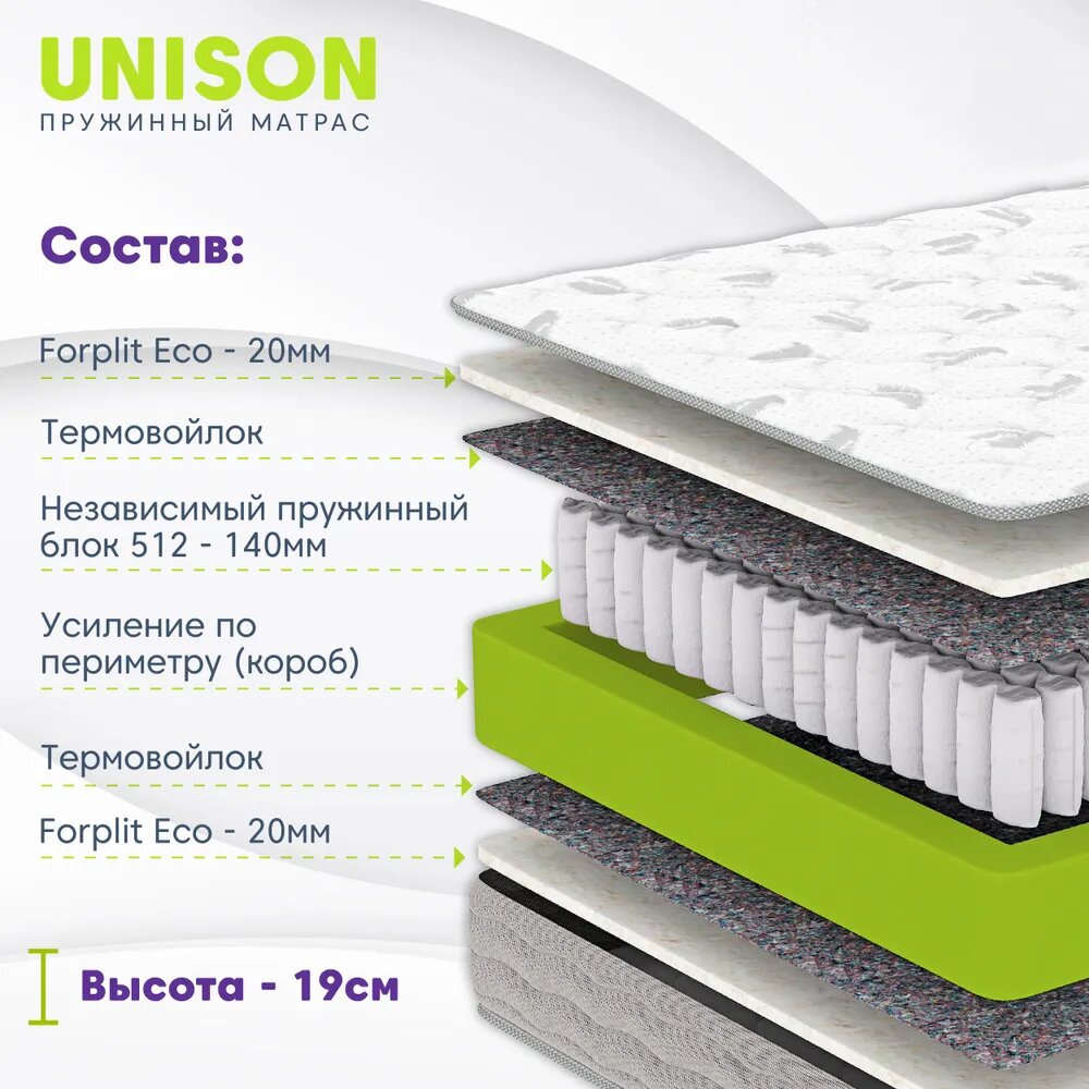 Ортопедический пружинный матрас Unison, 140х190 см, независимые пружины