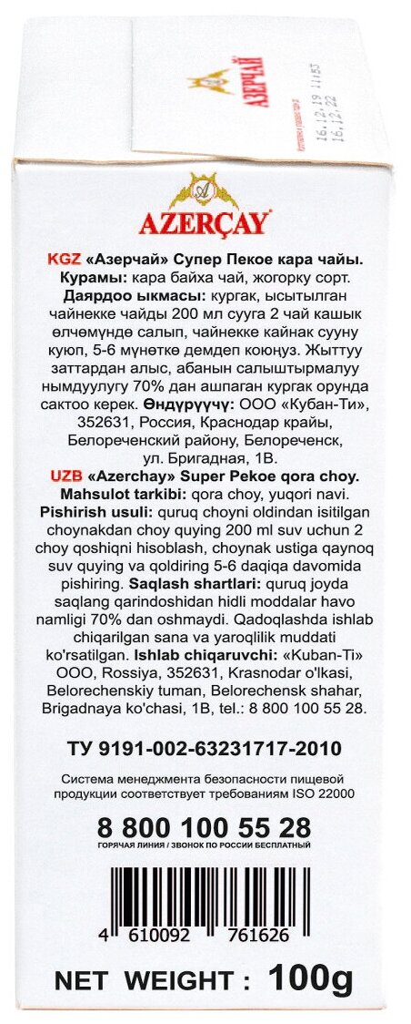 СохранитьАзерчай пекое 100гр чай черный среднелистовой интересное: