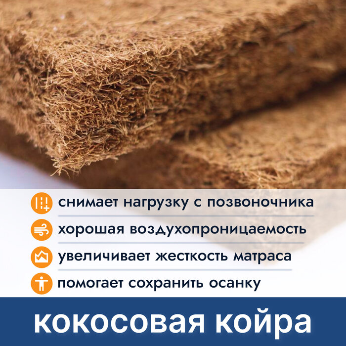 | Наполнитель | кокосовая койра / комбинированный / латекс / Пенополиуретан (ППУ) / спанбонд / термовойлок / холкон |