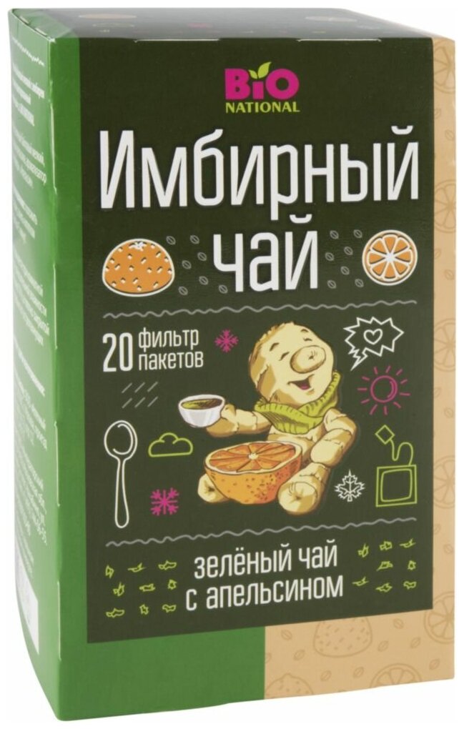 Чай BIONATIONAL имбирный зеленый с апельсином 1,7 г 20 ф/п интересное:
