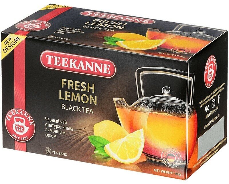 Чай TEEKANNE Fresh Lemon черный с лимонным соком 20 пак.*2 г интересное: