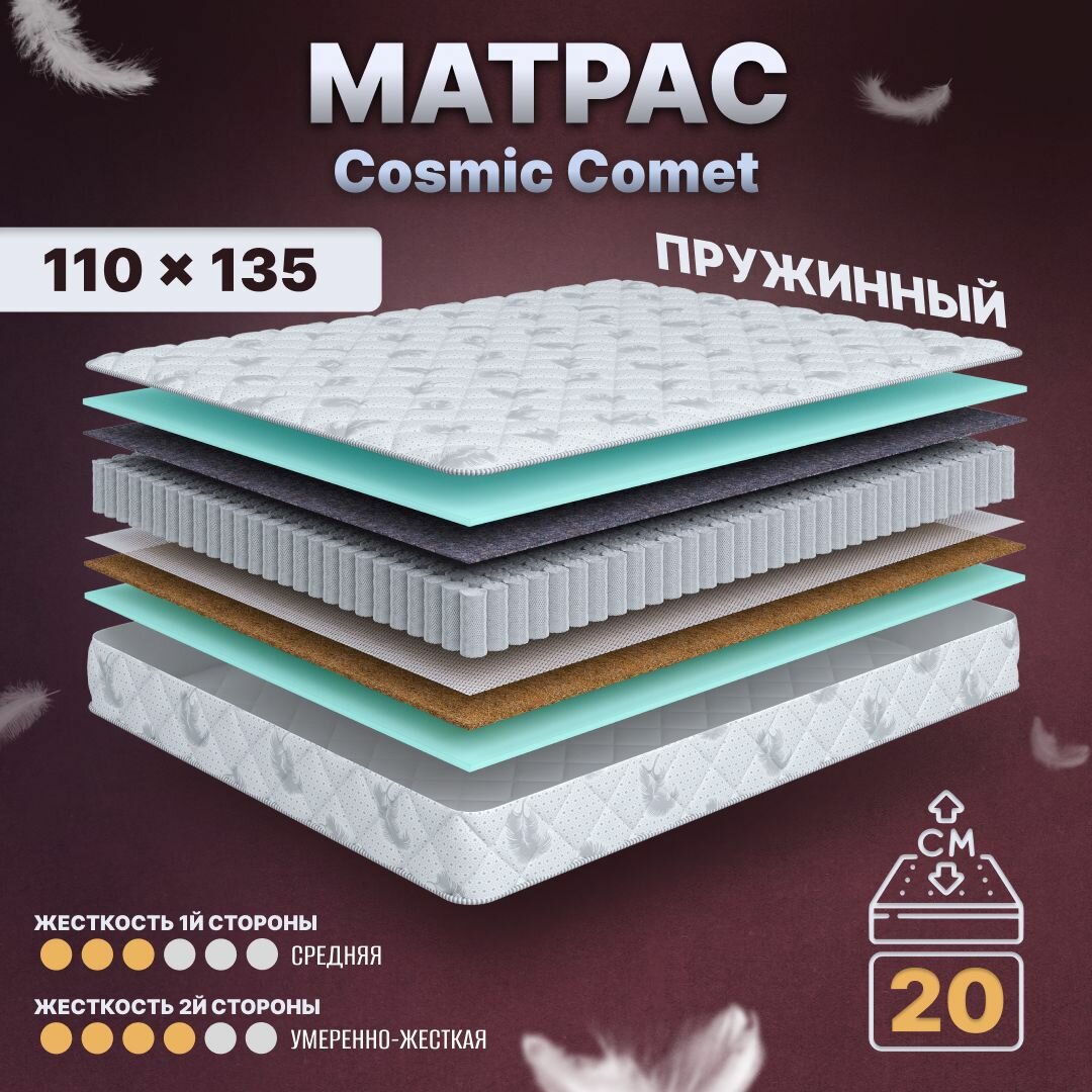 Купить Матрас с независимыми пружинами 110х135, для кровати, Cosmic Comet анатомический, 20 см, полутороспальный, средней жесткости