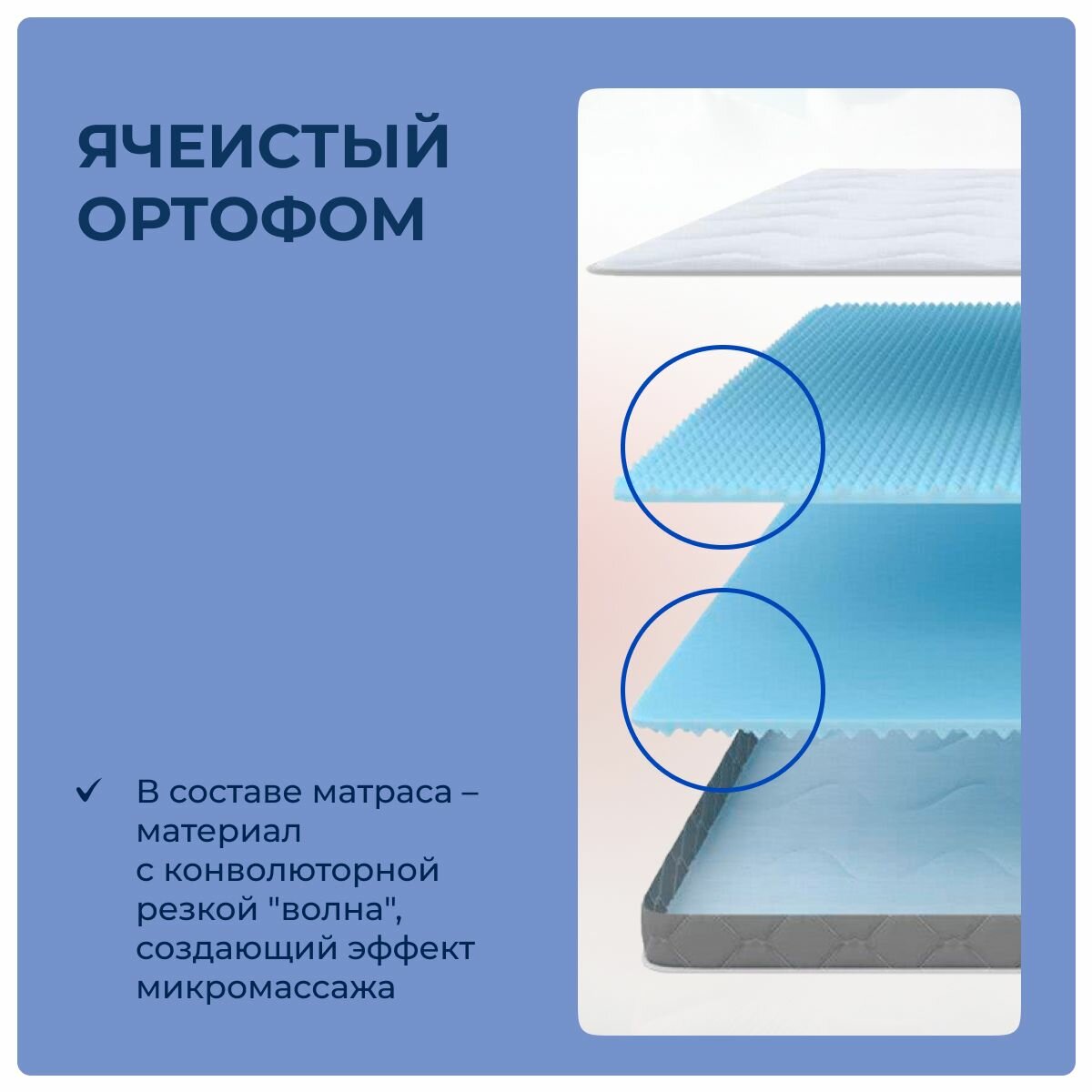 | Комбинированный наполнитель | Ортофом ячеистый 2см + Ортофом повышенной жесткости 2см + Ортофом ячеистый 2см |