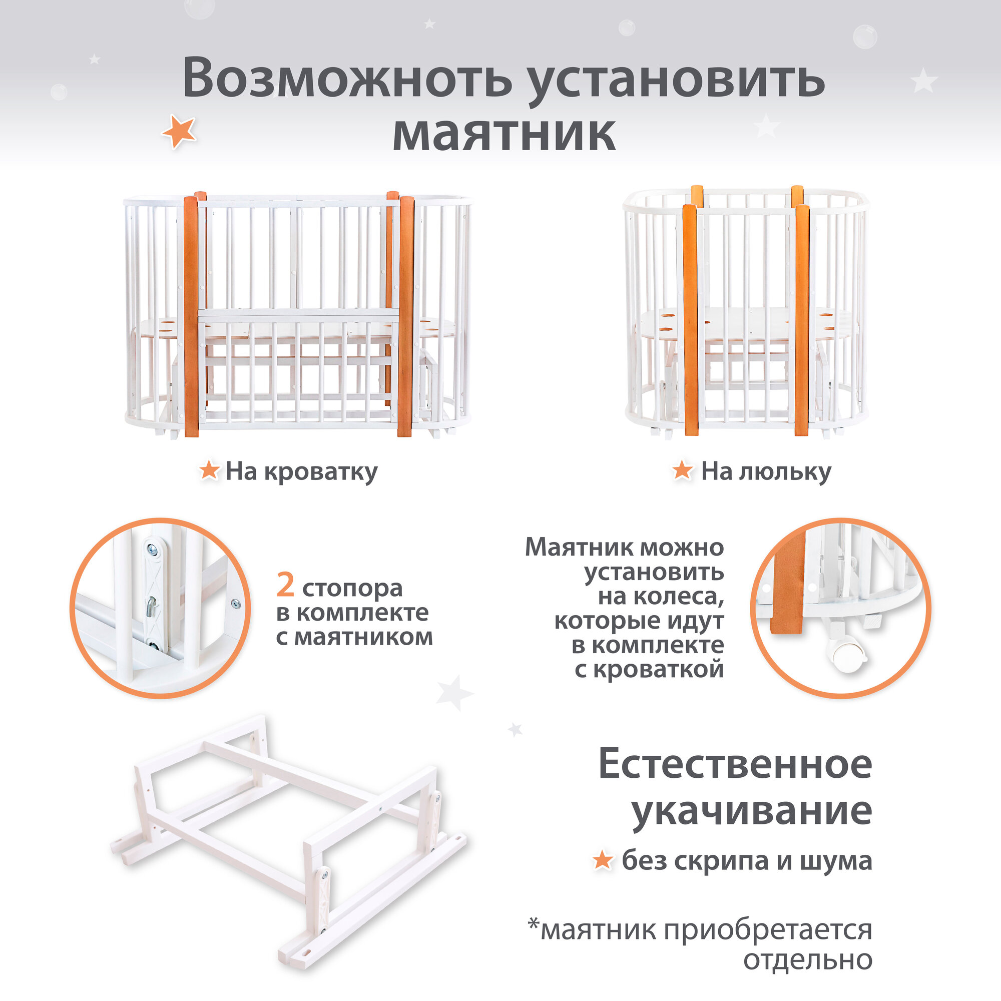 ВДК Детская кровать-трансформер «Слоник» с поперечным маятником, цвет белый