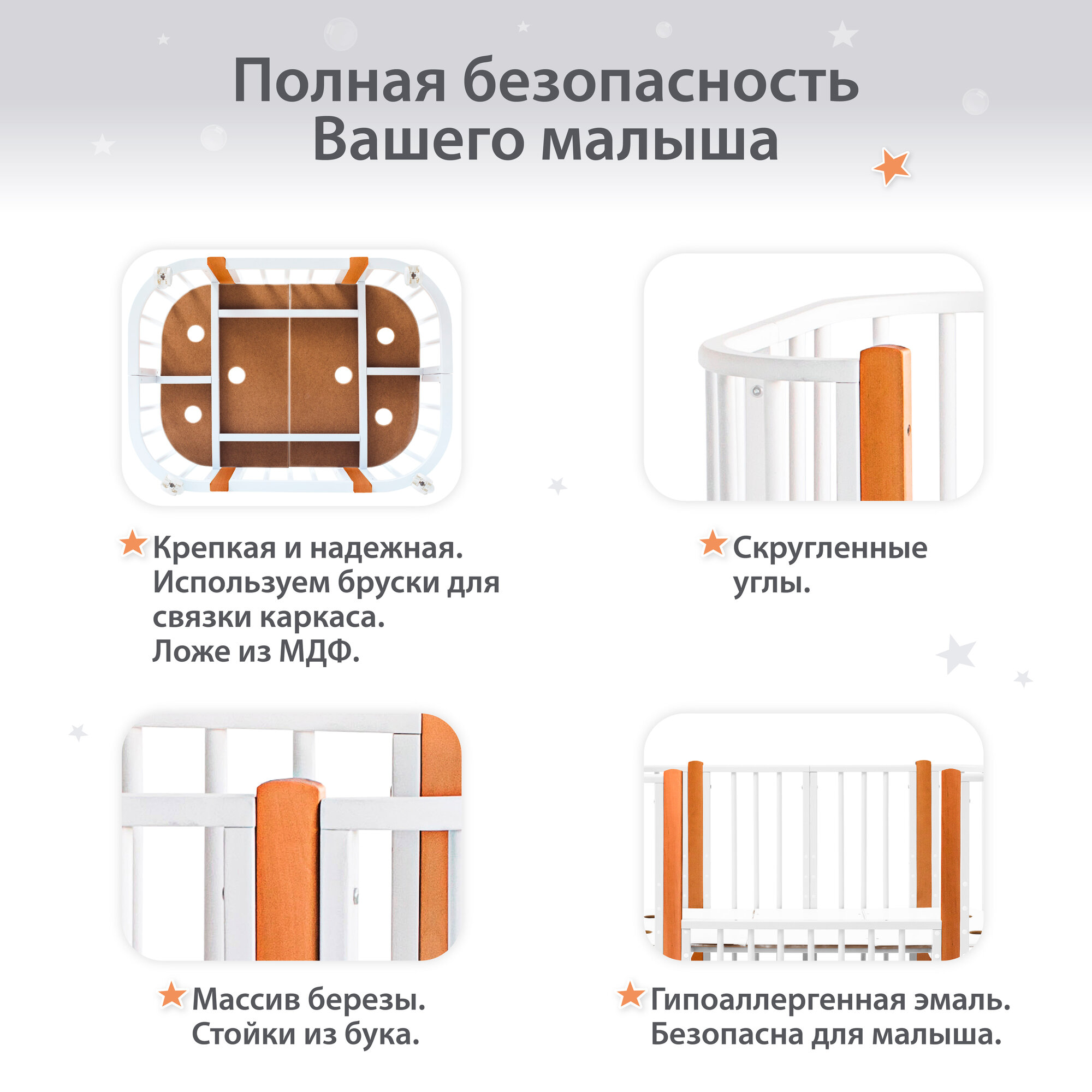 Кроватка трансформер, Лёвушка-1 для новорожденного, береза, цвет белый, бук, 120х60 см, 85х60 см интересное: