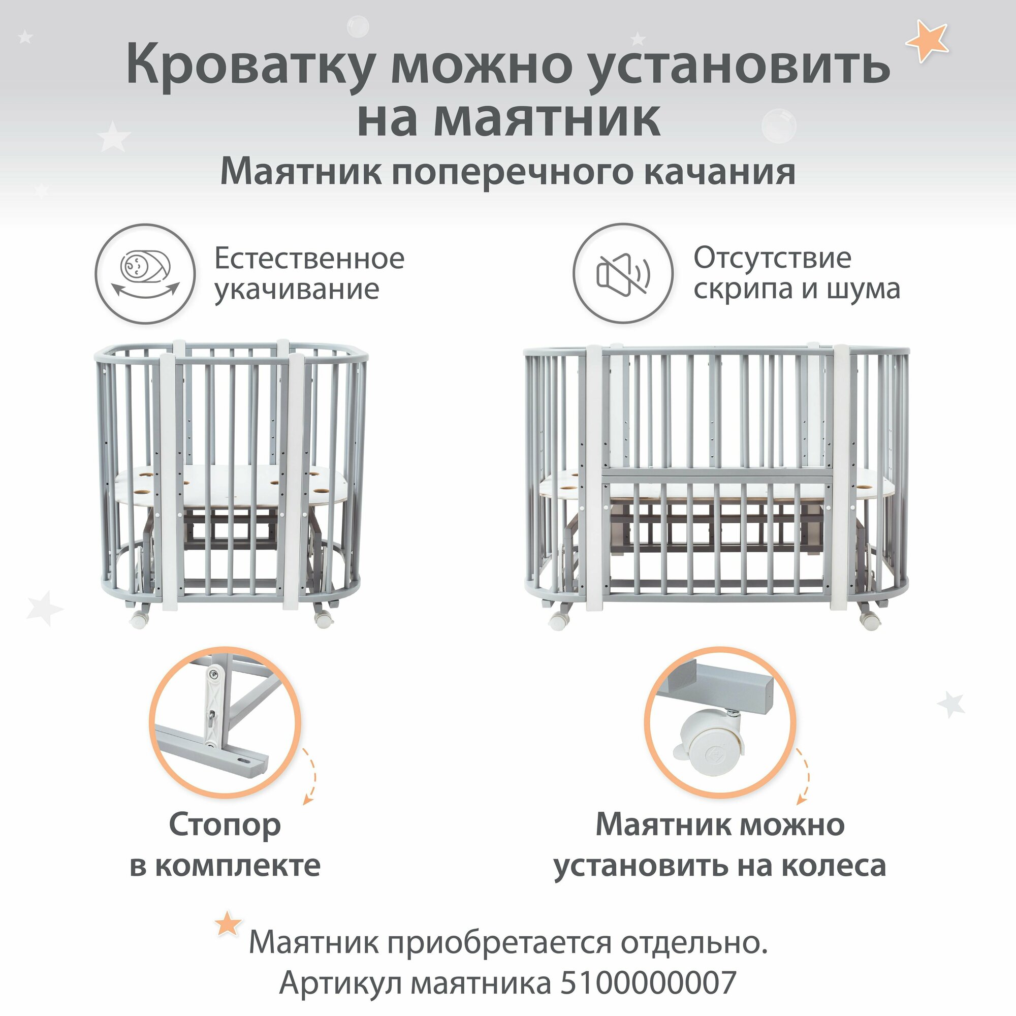 Кроватка для новорожденного трансформер Лёвушка-1, 120х60 см, 85х60 см, Береза, цвет Серый, Белый интересное: