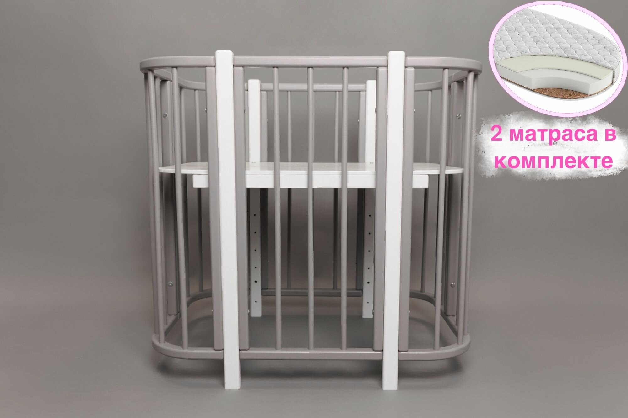 Купить Кроватка-трансформер Merry Happy 4в1 Карамель серая + комплект матрасов
