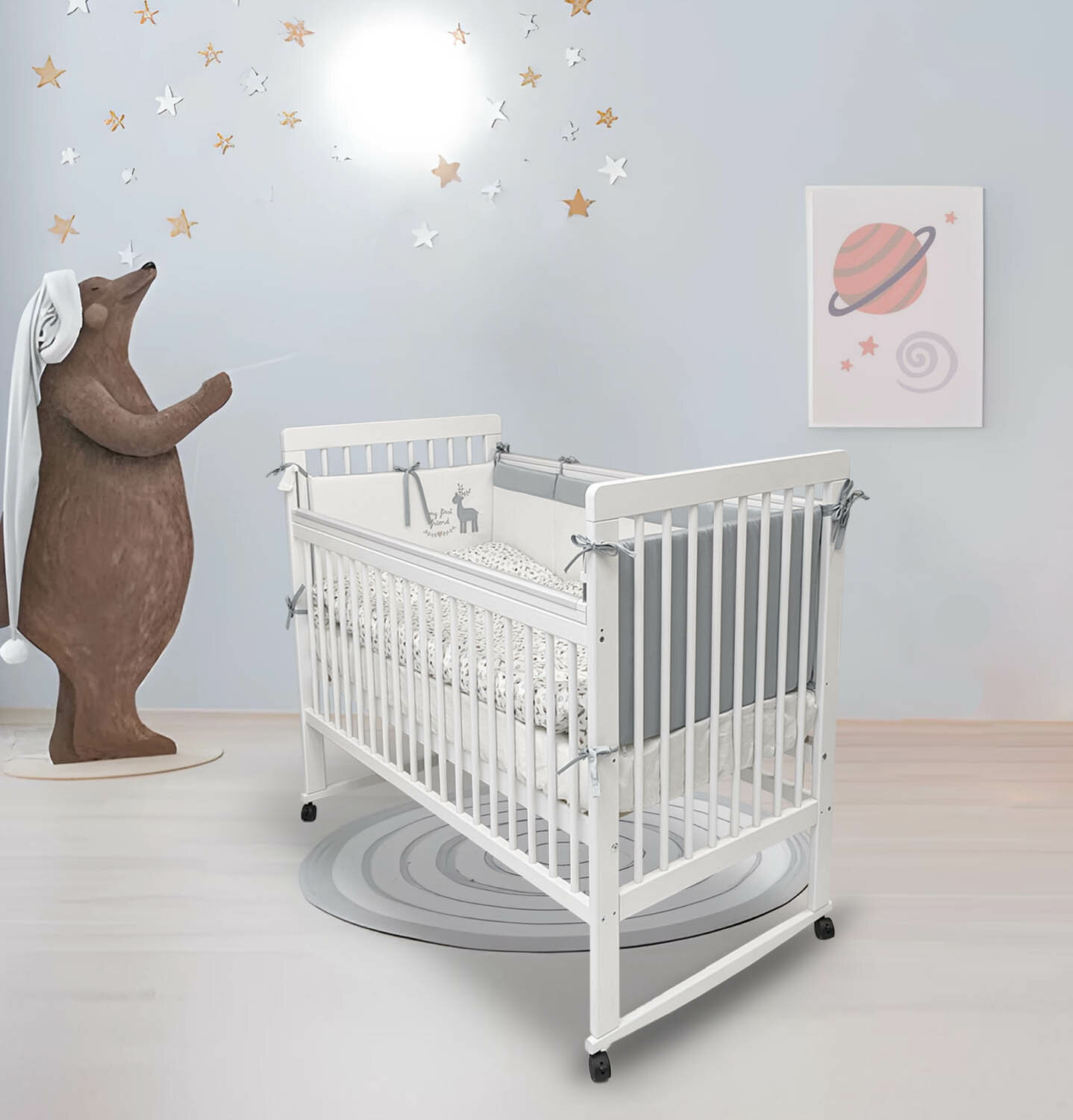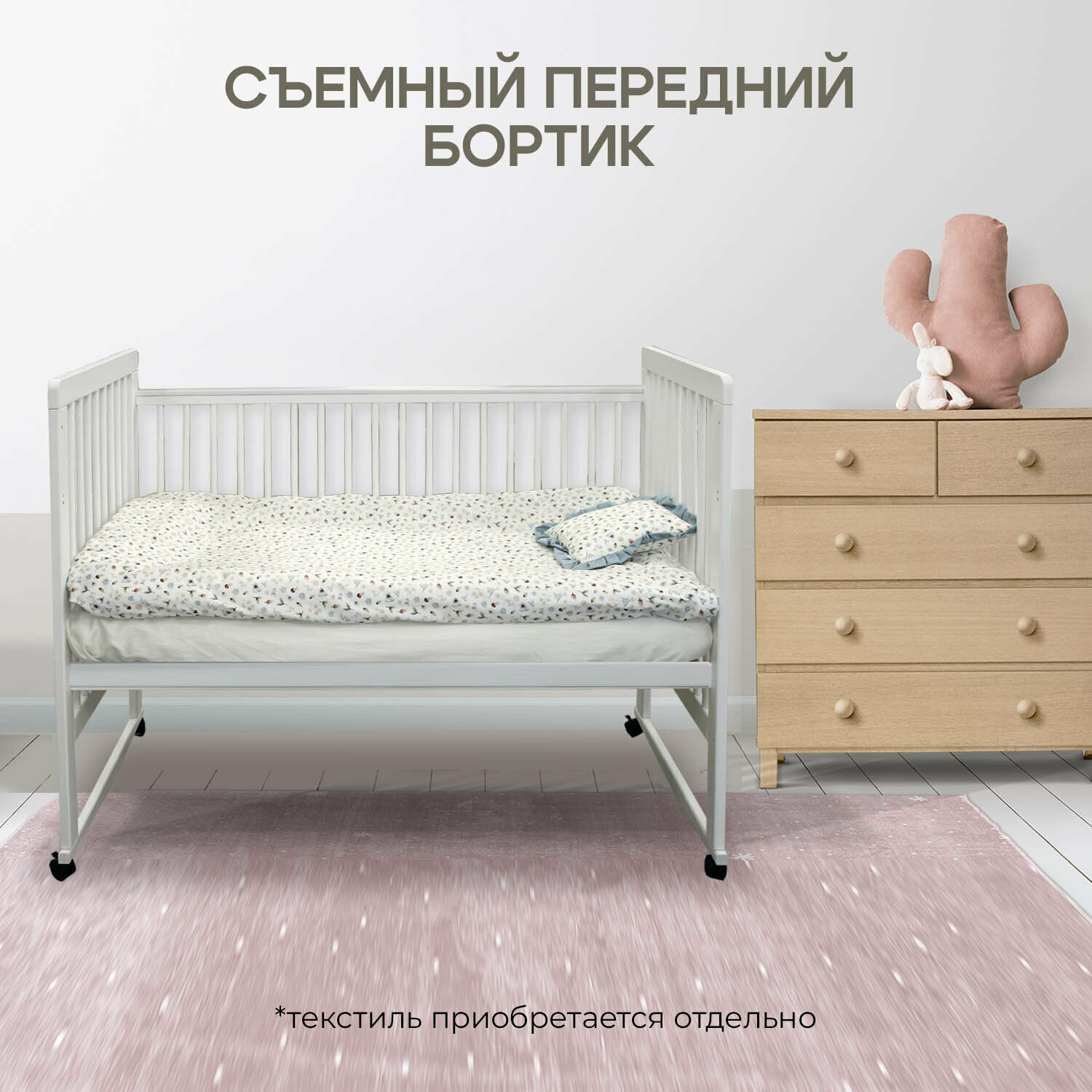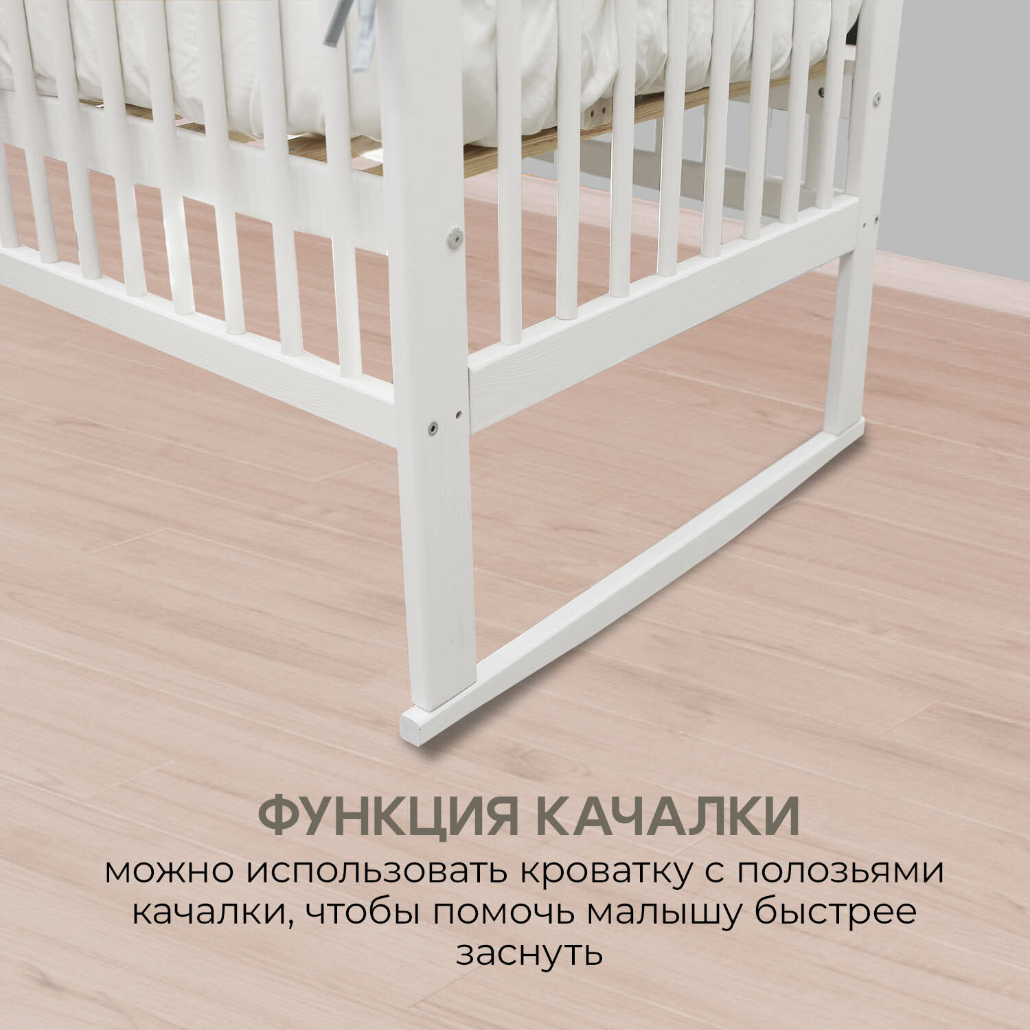 | Комплектация | Кровать без матраса Комплект колес комплект Качалка Накладки на бортики |