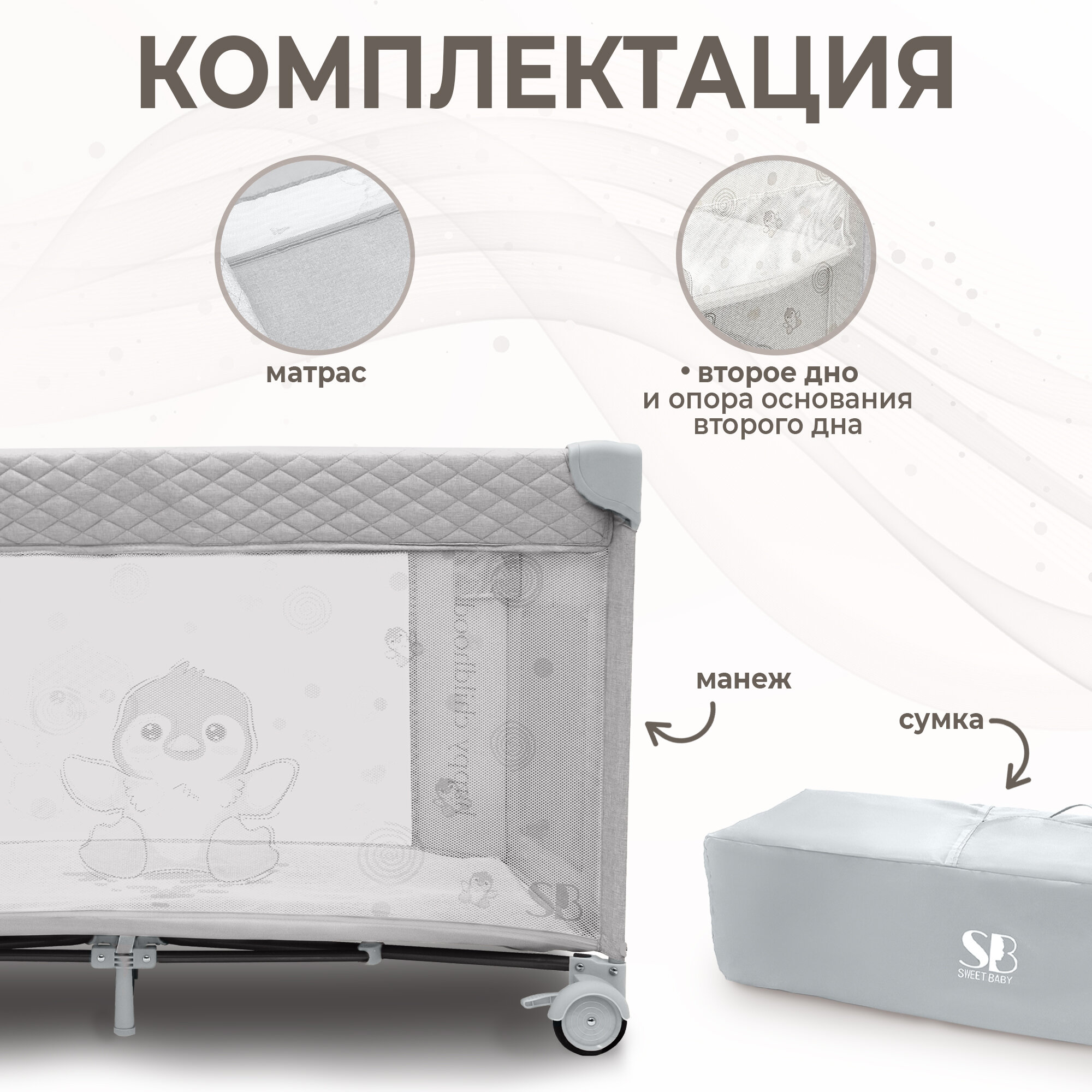 Манеж детский Sweet Baby Calma (Grey Penguin) интересное: