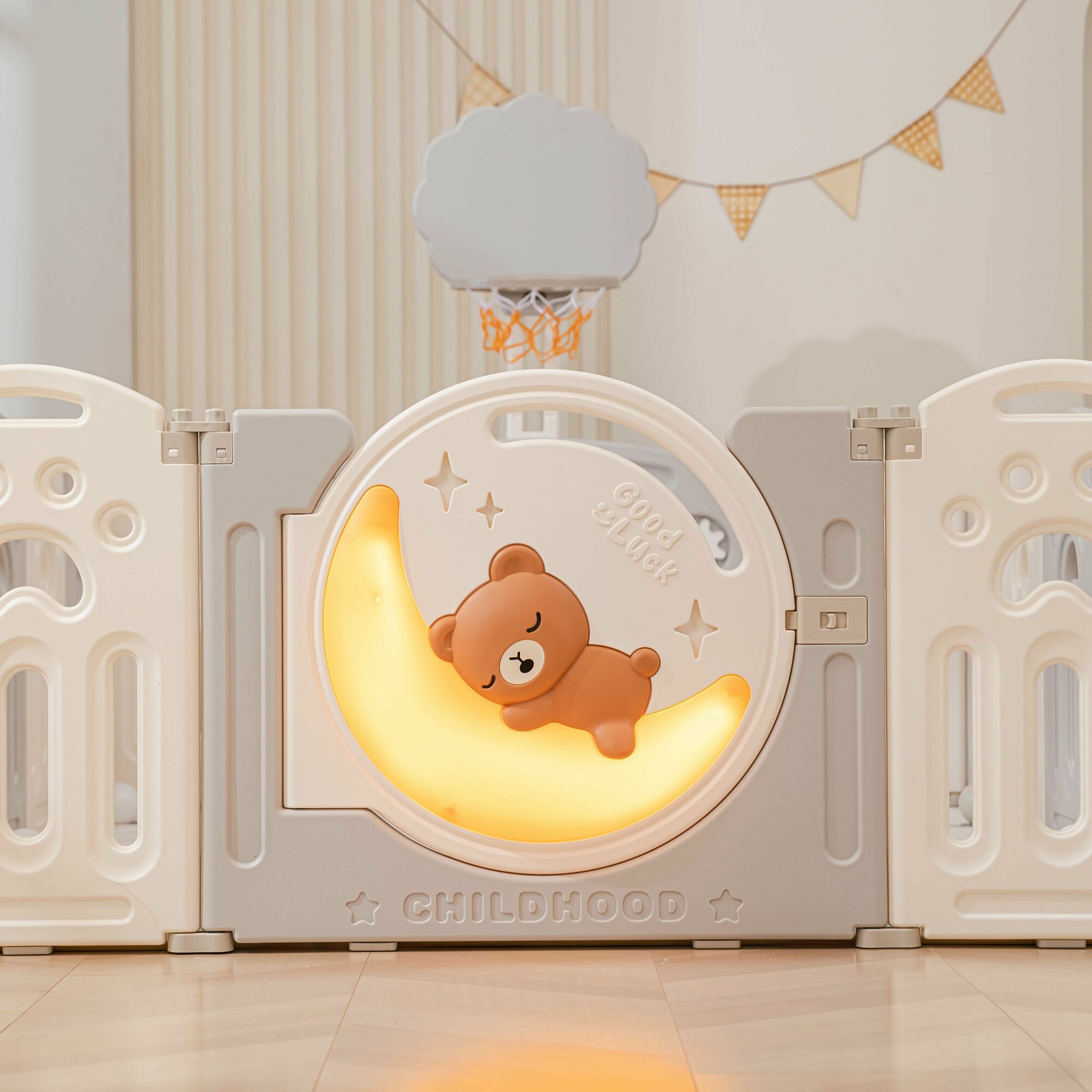 Манеж UNIX Kids DeLuxe Grey 150 x 180 см, с баскетбольной стойкой и ковриком _ для девочек и мальчиков _ серый _ белый интересное: