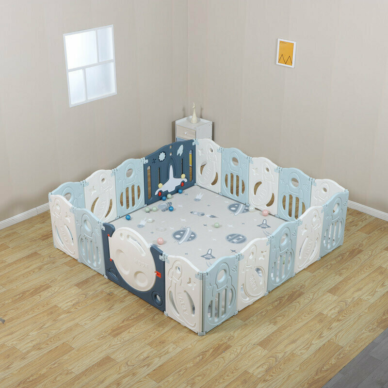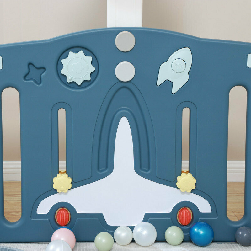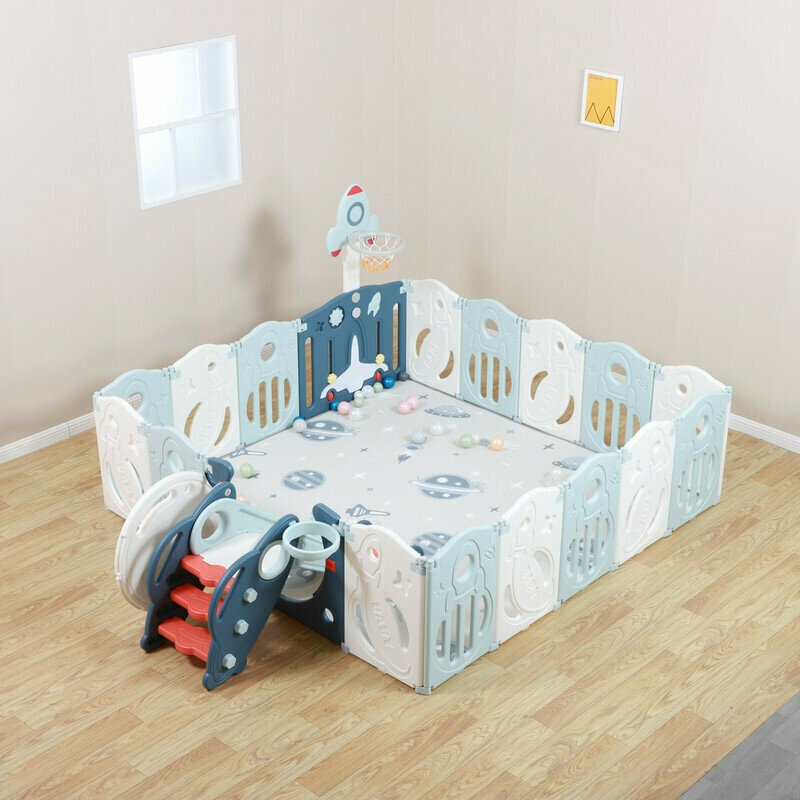 Манеж UNIX Kids Supreme Space Blue, коврик, горка, баскетбольное кольцо, качели, голубой, 200х200 см интересное: