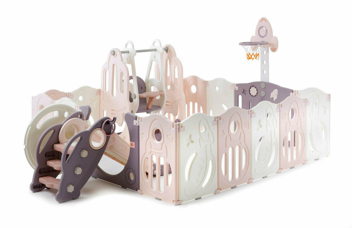 Манеж UNIX Kids Supreme Space Rose, коврик, горка, баскетбольное кольцо, качели, розовый, 200х200 см интересное: