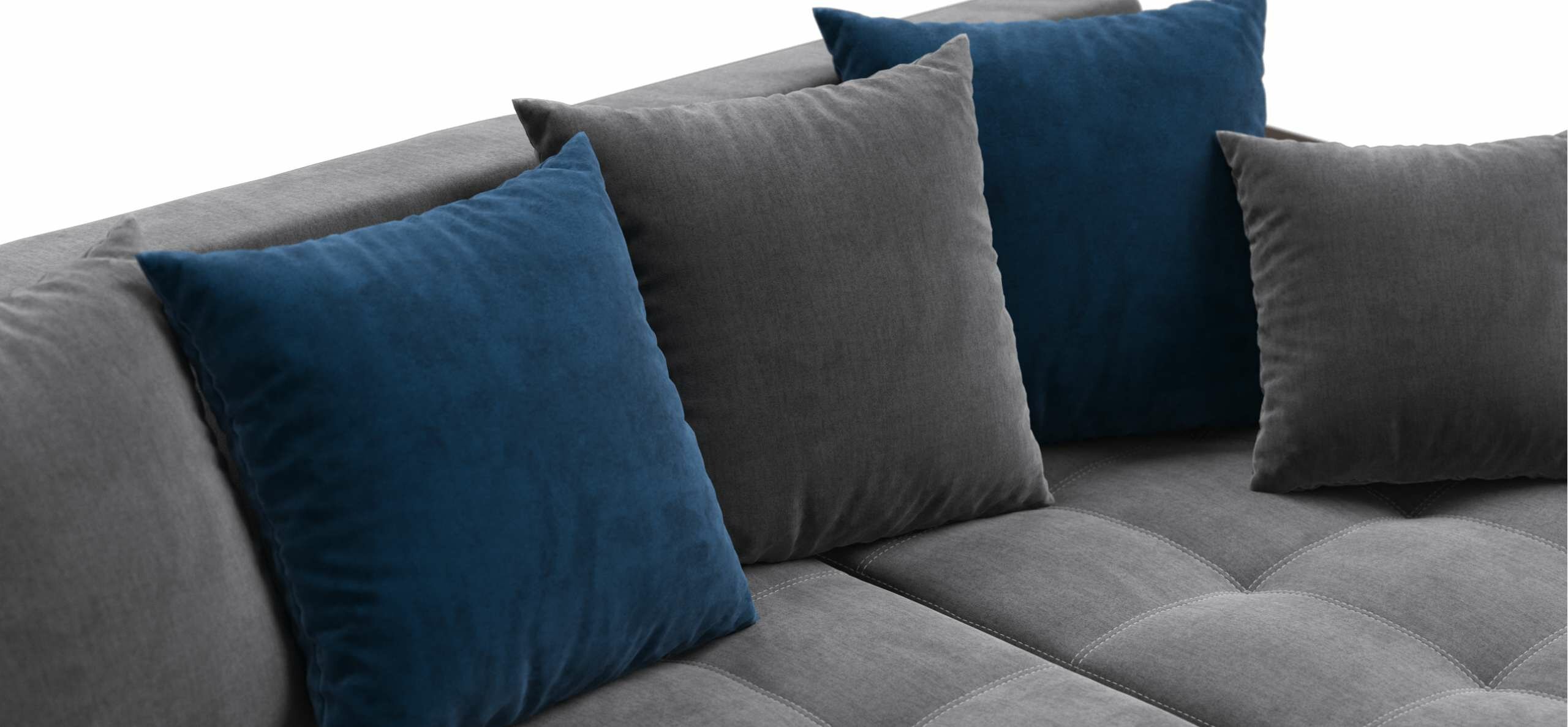 Угловой диван Много мебели Дубай 3.0, велюр Monolit серый/синий, 300x155x87 см, НПБ