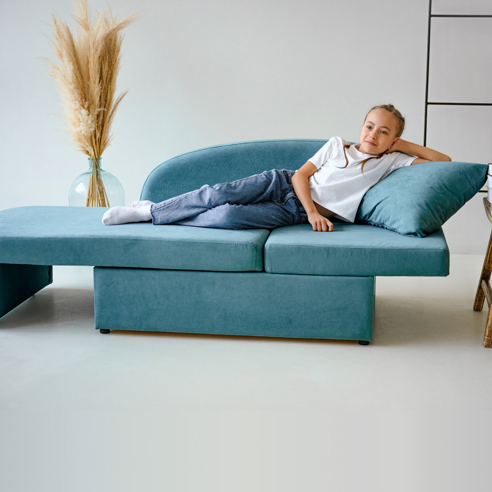Купить Детский диван-кровать раскладной, 337 диван правая ориентация, износостойкий велюр, цвет мятный