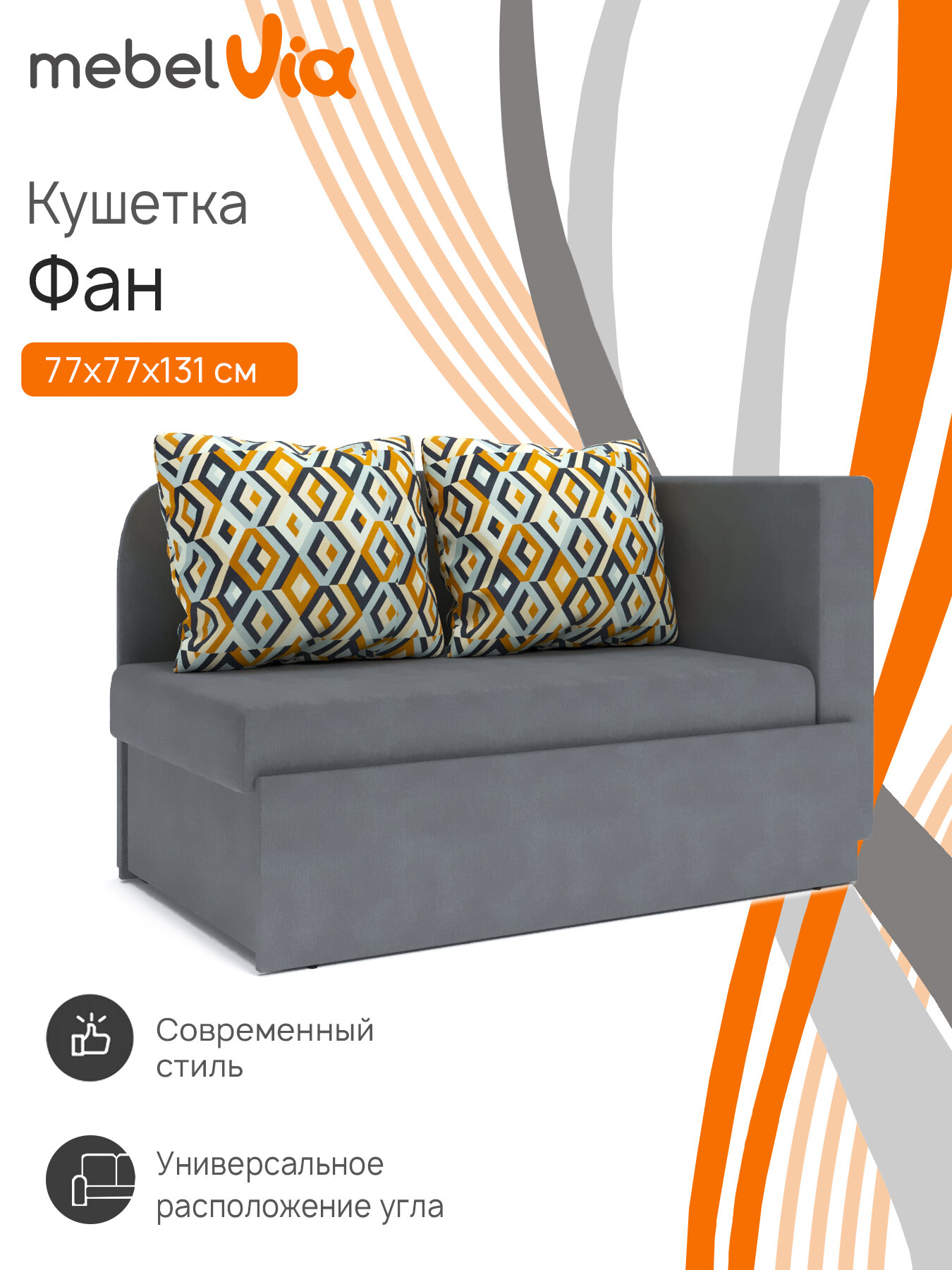 Кушетка Фан, универсальная, велюр, серый, 131х77х77 см, MebelVia