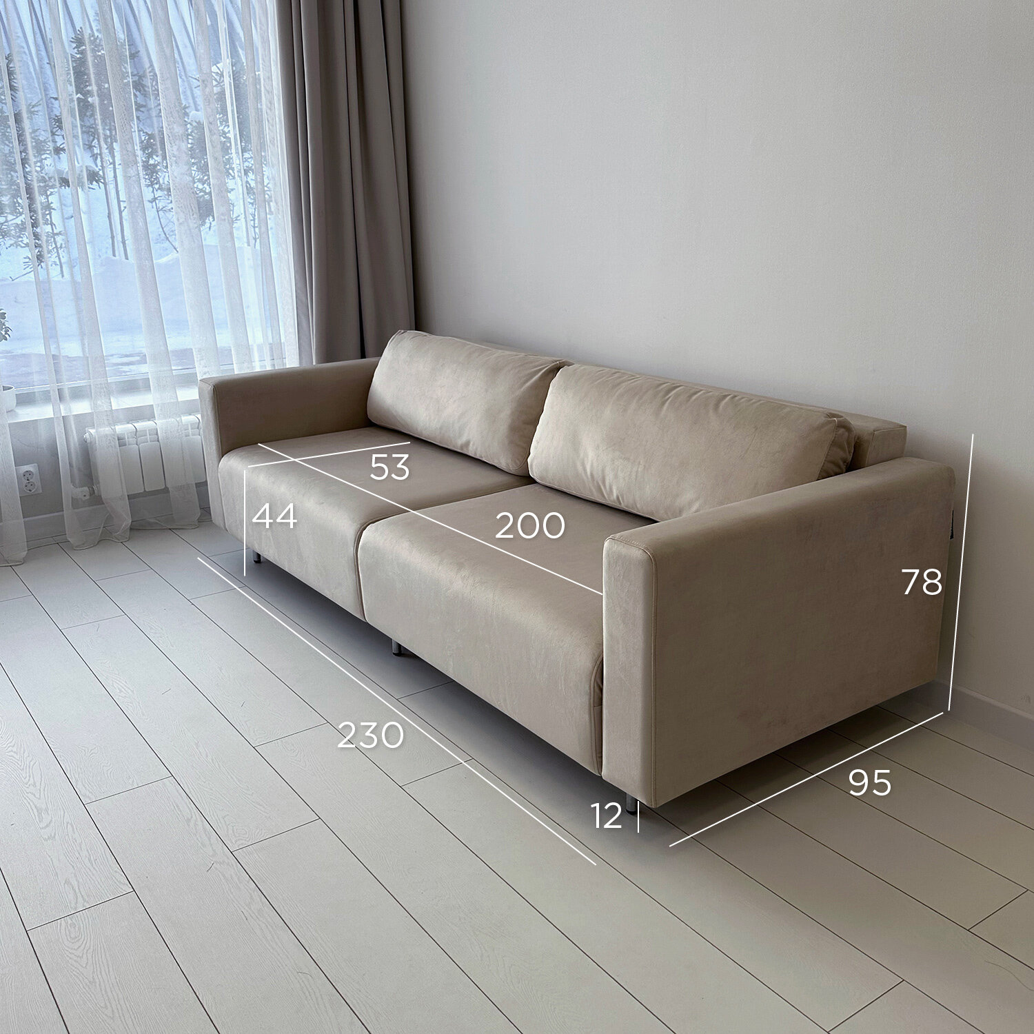 Диван-кровать Redsofa Монблан 230см темно-бежевый Teddi. Раскладной прямой диван со съемными чехлами Редсофа, для дома и офиса