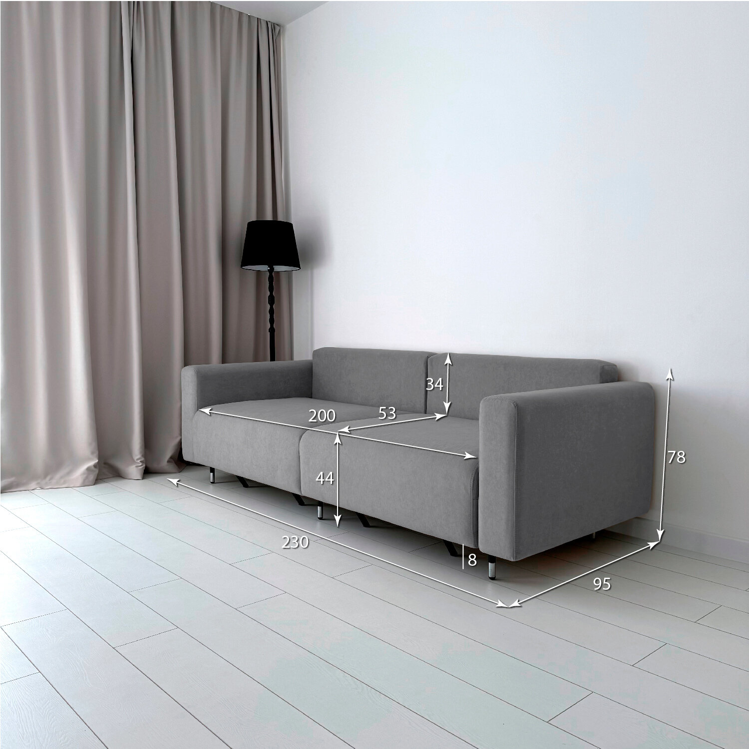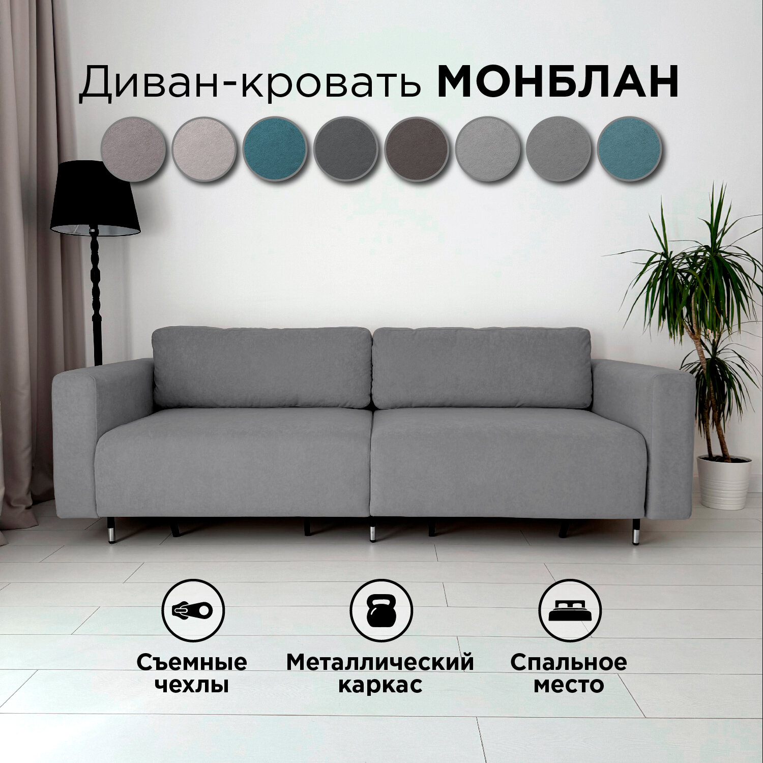 Диван-кровать Redsofa Монблан 230см серый Ocean. Раскладной прямой диван со съемными чехлами Редсофа, для дома и офиса