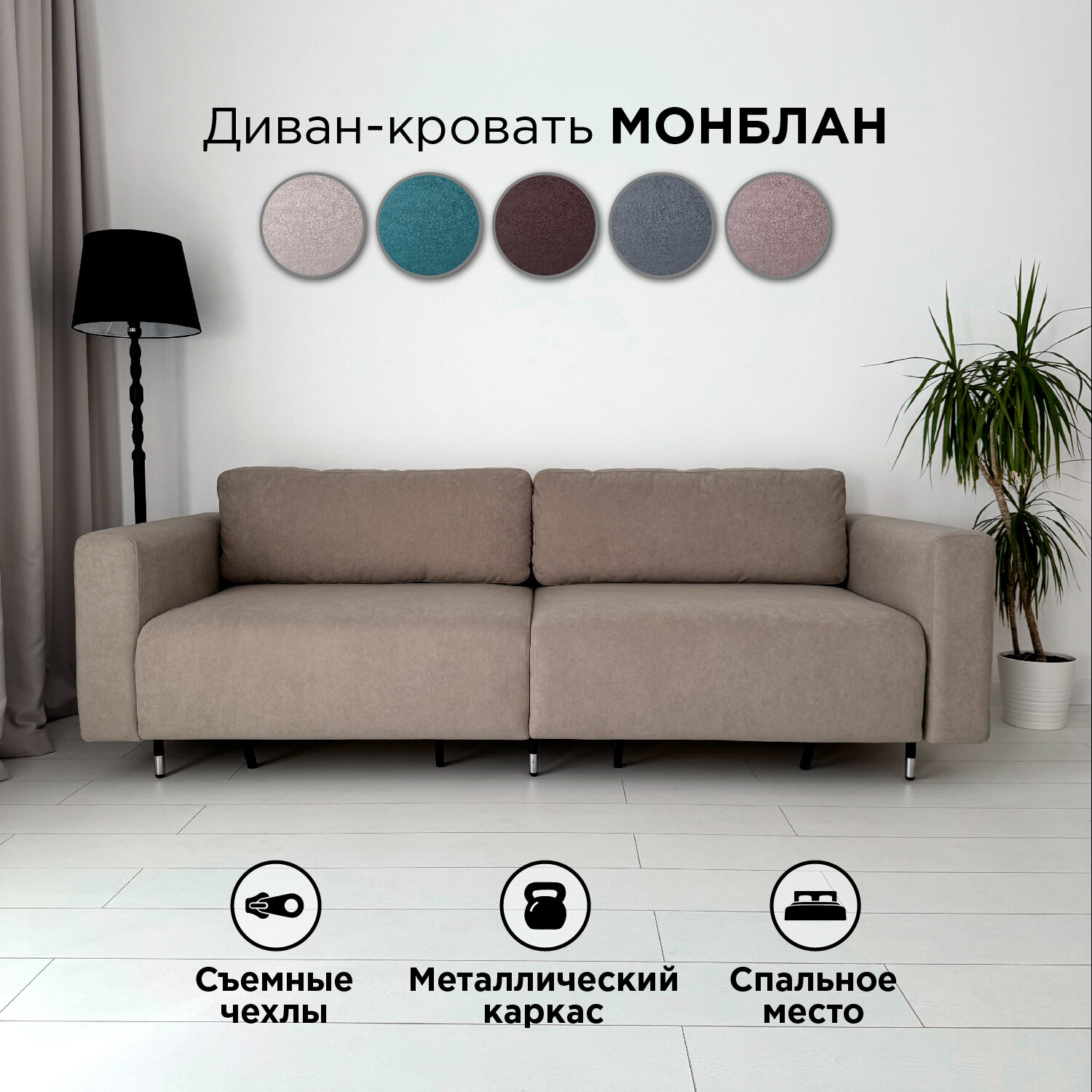Диван-кровать Redsofa Монблан Букле латте. Раскладной прямой диван со съемными чехлами Редсофа, для дома и офиса (Мебельный гарнитур бытового назначения)