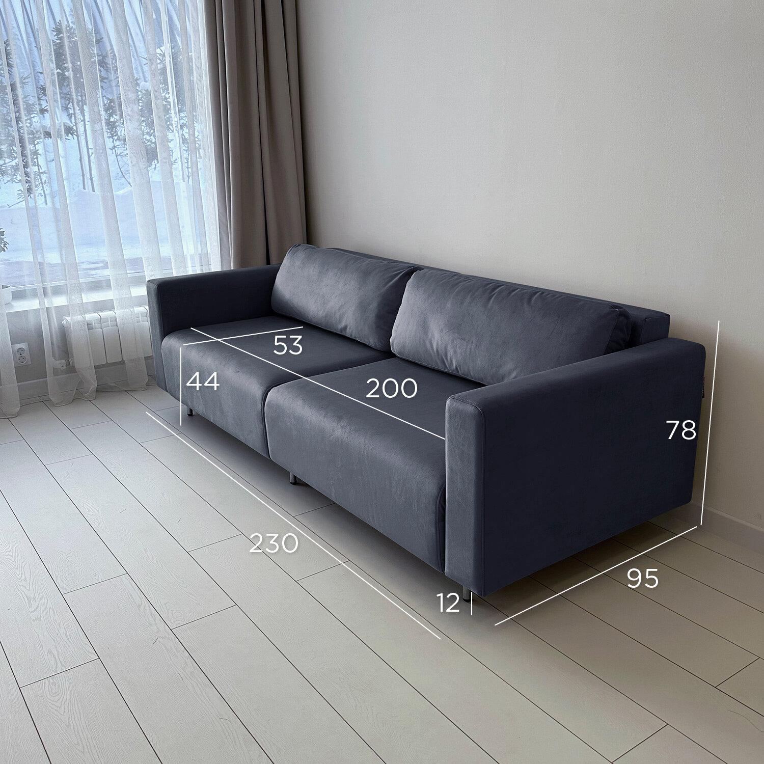 Диван-кровать Redsofa Монблан 230см графит Teddi. Раскладной прямой диван со съемными чехлами Редсофа, для дома и офиса