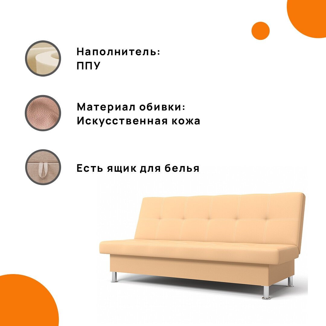 Купить Диван прямой Марсель MebelVia с ящиком для белья, механизм Клик-кляк, 187х82х80, бежевый, искуственная кожа