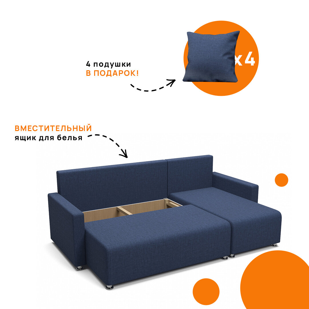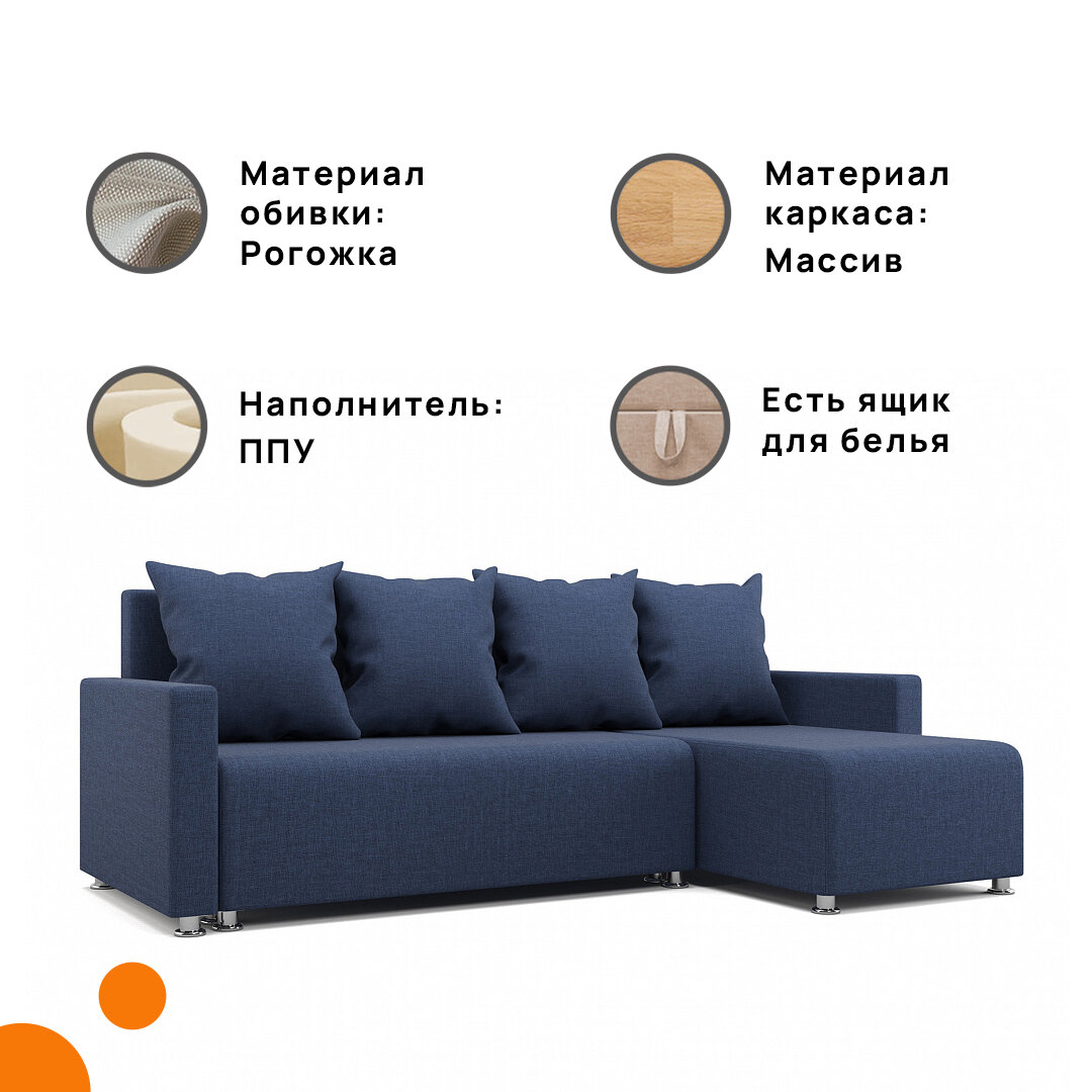 Угловой диван Каир MebelVia темно-синий, рогожка, еврокнижка, универсальный угол интересное: