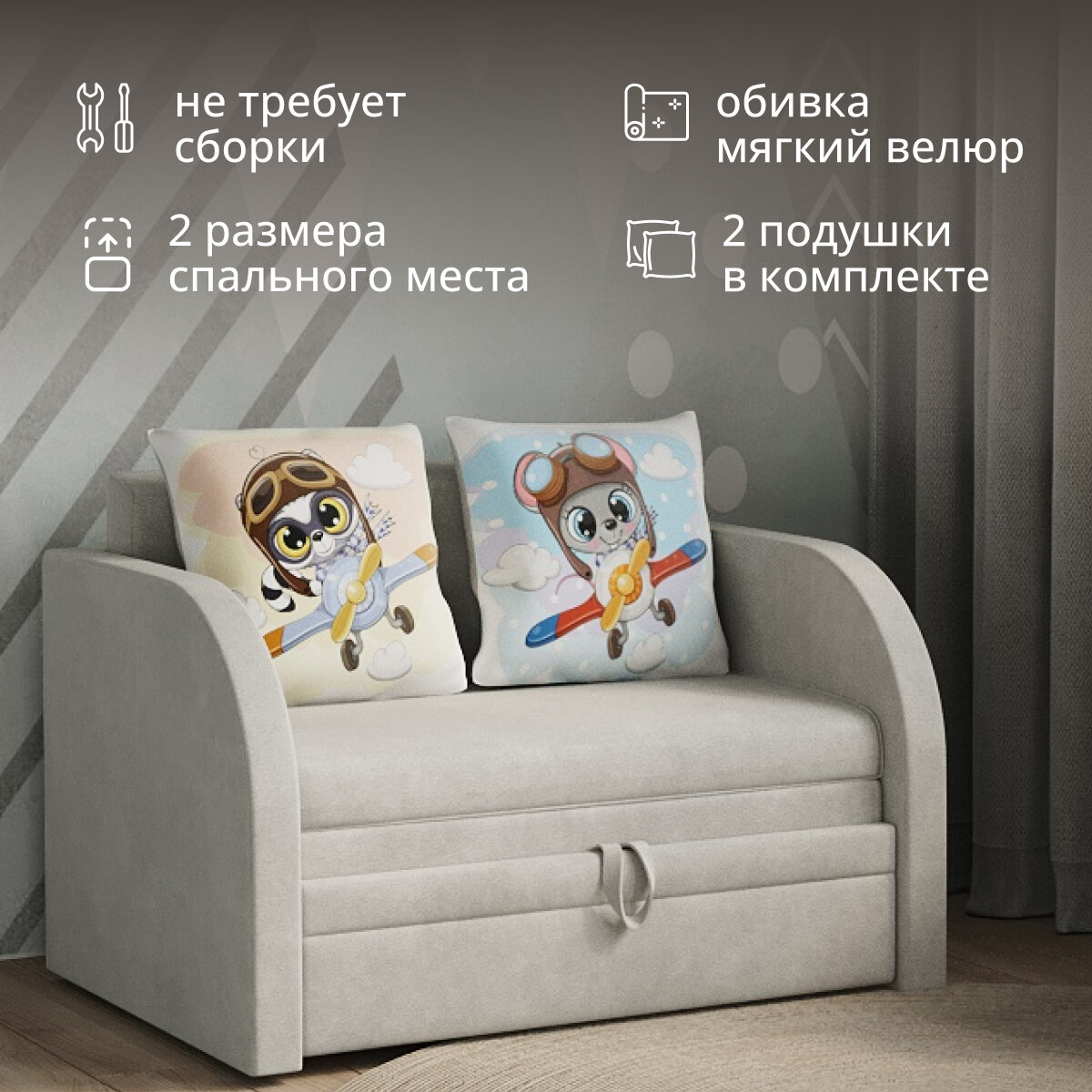 Детский диван-кровать Dинастия-К "Малыш", выкатной механизм, обивка из велюра