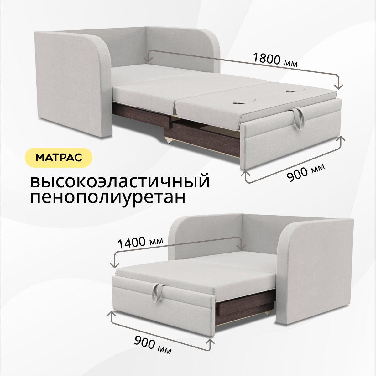 | Особенности | раскладная конструкция, с подлокотниками, съемные подушки, съемный чехол, ящик для белья |