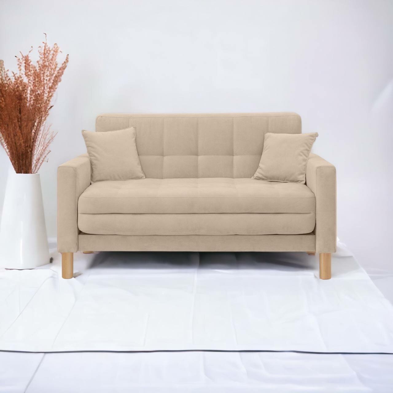 Купить Диван-кровать Монро-макси, прямой, 137*80*81, спальное 120*194, велюр бежевый, Велутто 07