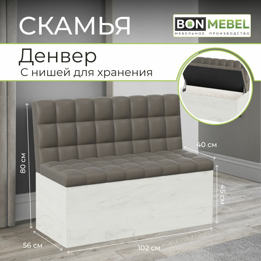 Диван BONMEBEL, Денвер, Сонома / КЗ Коричневый, для кухни, для прихожей, для гостиной