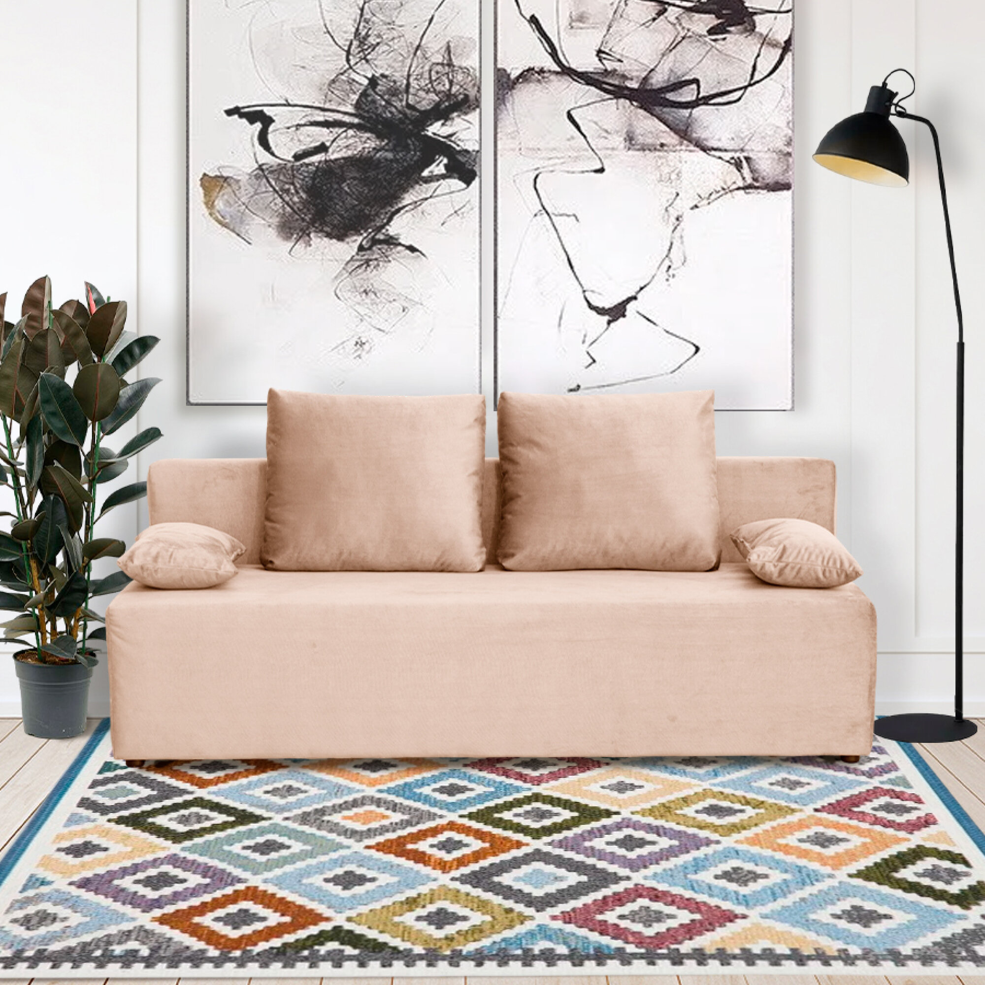 Раскладной диван кровать Берн, механизм еврокнижка, 190х84х72 см, розовый, прямой диванчик с ящиком для хранения