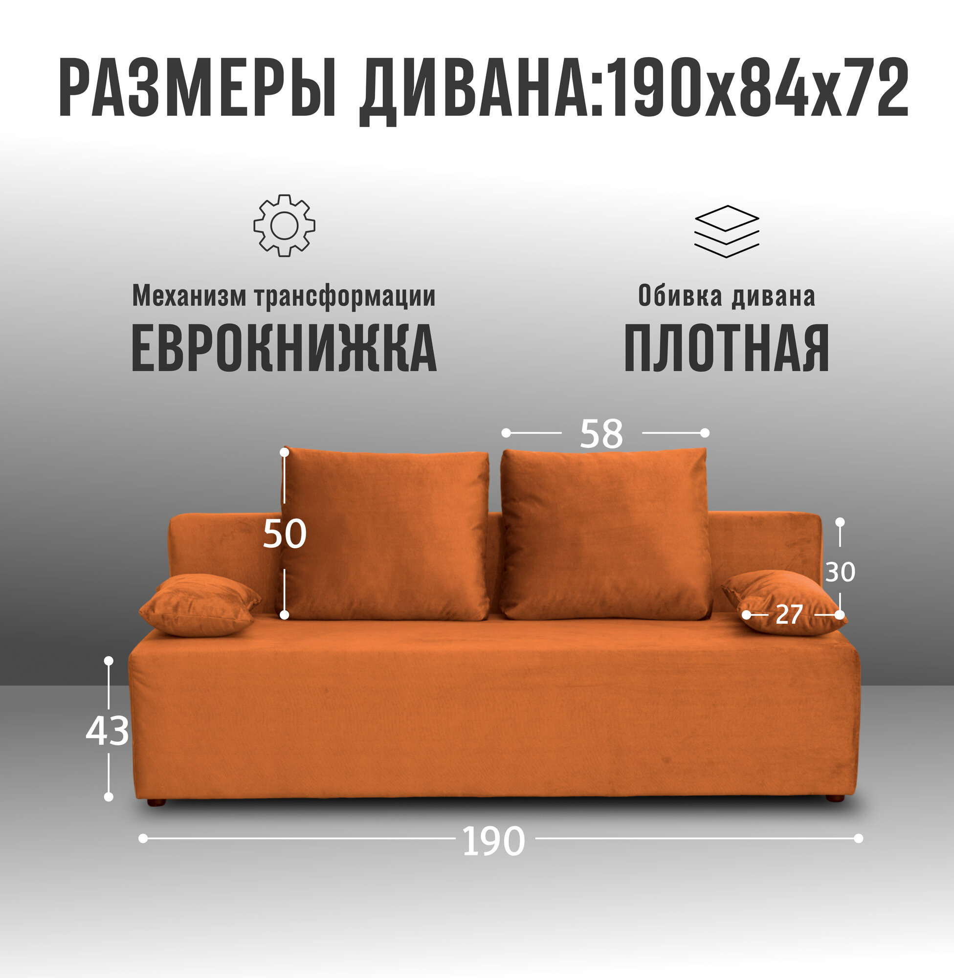 СохранитьРаскладной диван кровать Берн, механизм еврокнижка, 190х84х72 см, оранжевый, прямой диванчик с ящиком для хранения интересное: