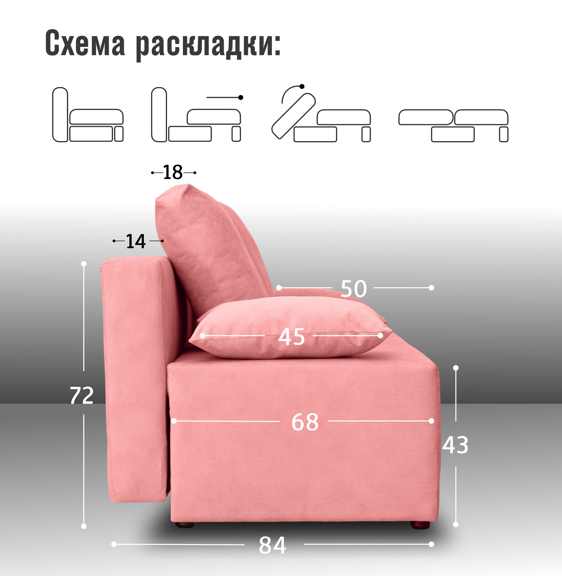 | Особенности | без подлокотников, раскладная конструкция, съемные подушки, ящик для белья |
