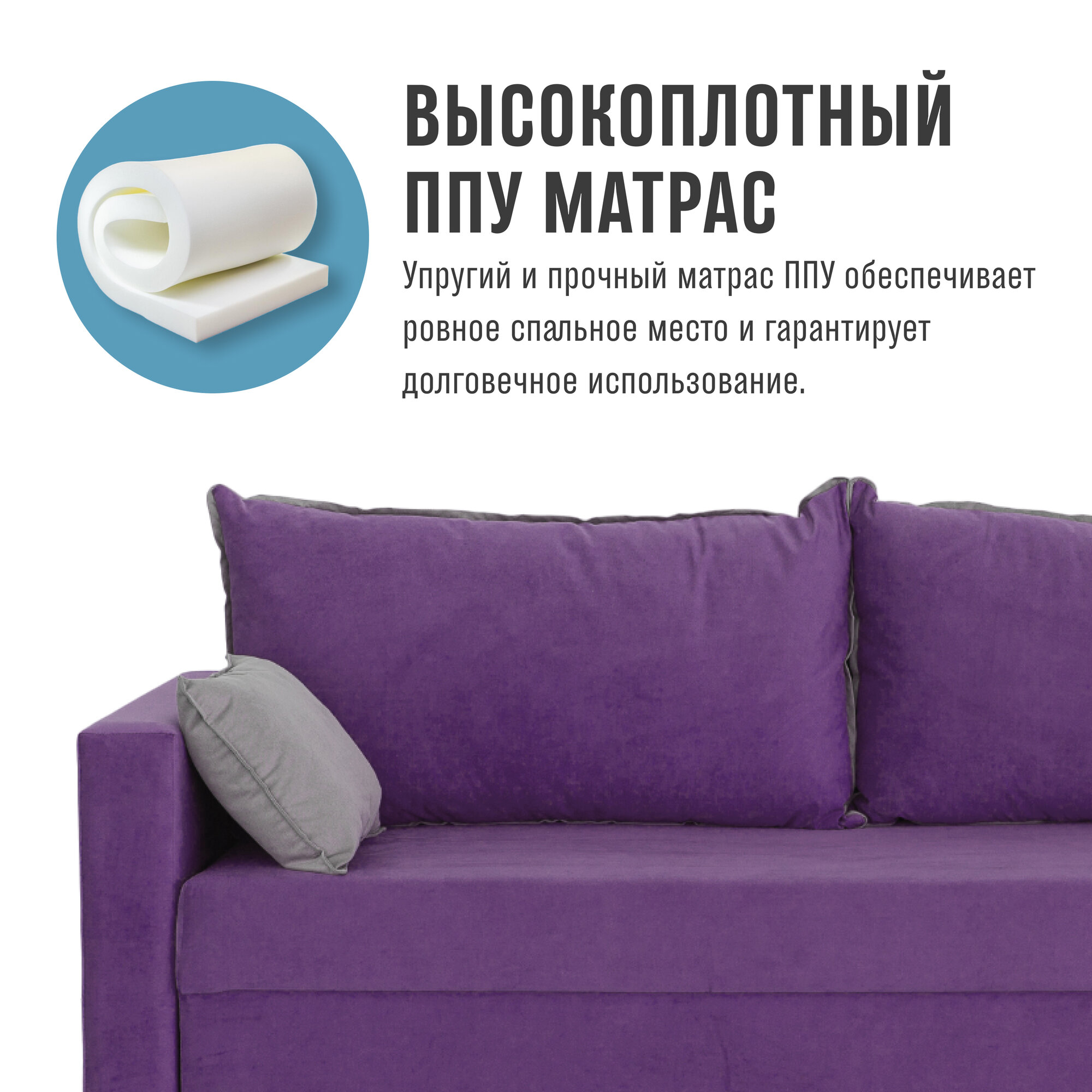Купить Раскладной диван кровать Венеция прямой, механизм еврокнижка, 220х96х85 см, фиолетовый