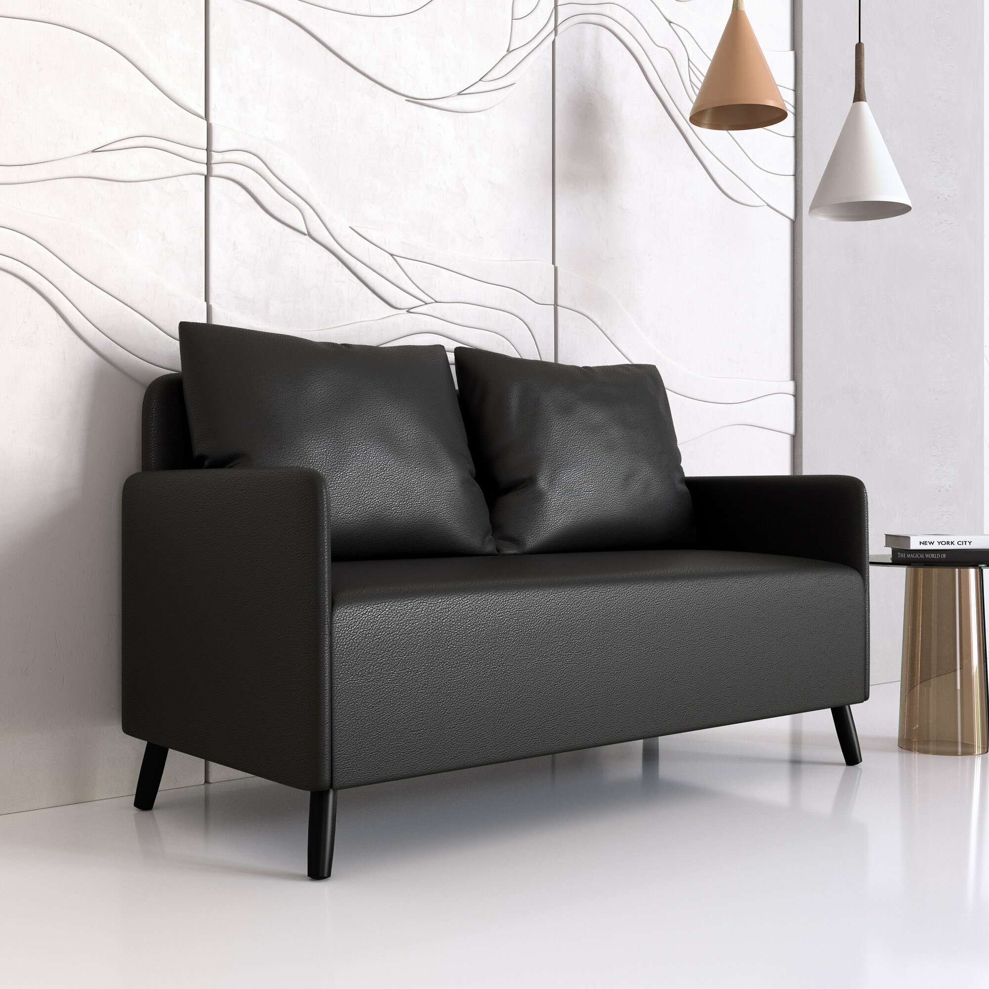 Диван Будапешт экокожа черный, в салон, прихожую, на кухню 130х72х85