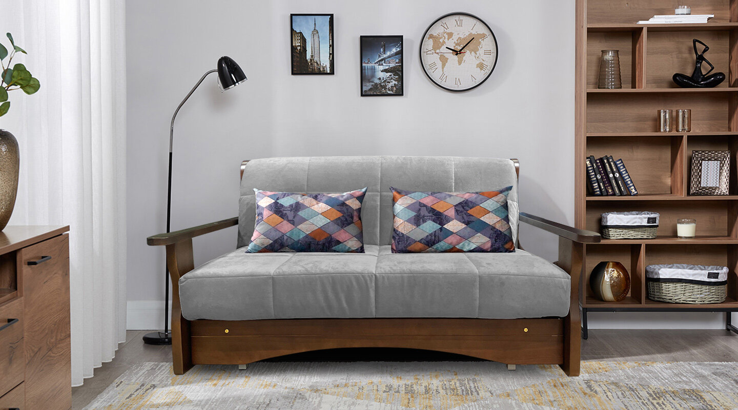 Прямой диван аккордеон Креско Д 162х107х89 см, серый рогожка
