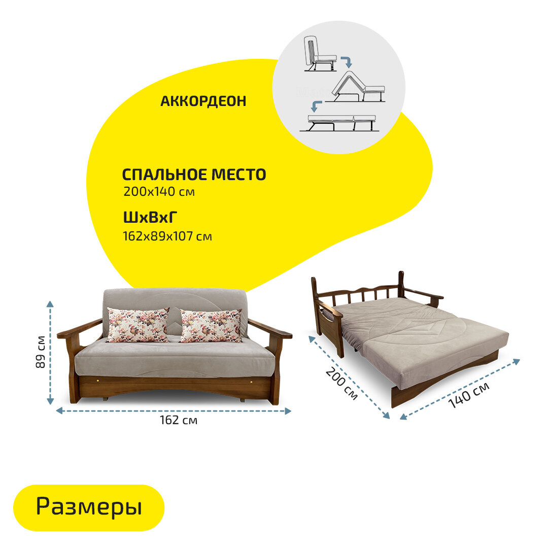 СохранитьПрямой диван аккордеон Креско Д 162х107х89 см, бежево-серый велюр интересное: