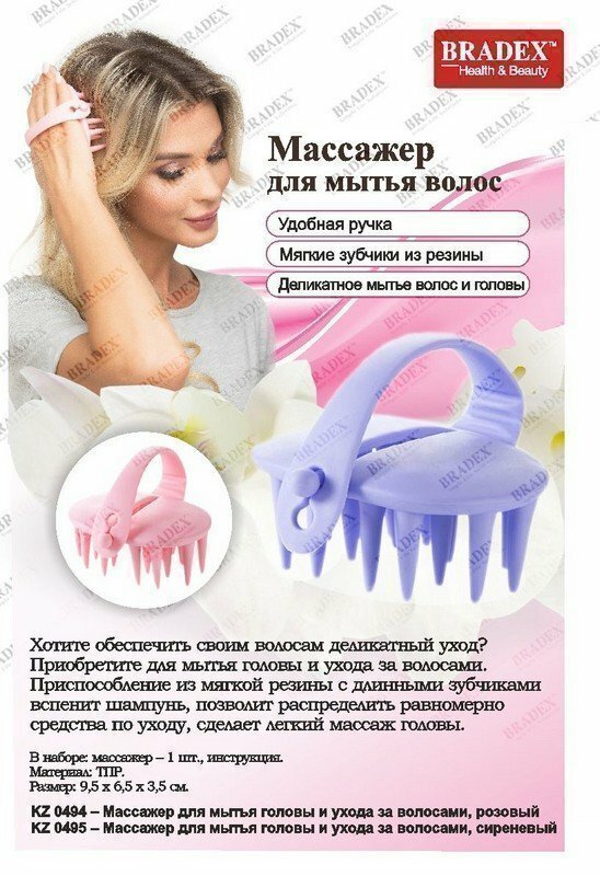 СохранитьМассажер для мытья головы и ухода за волосами, сиреневый KZ 0495 BRADEX интересное: