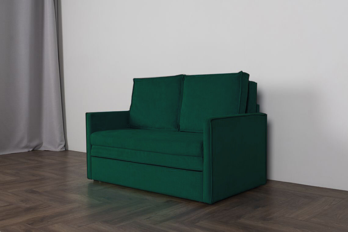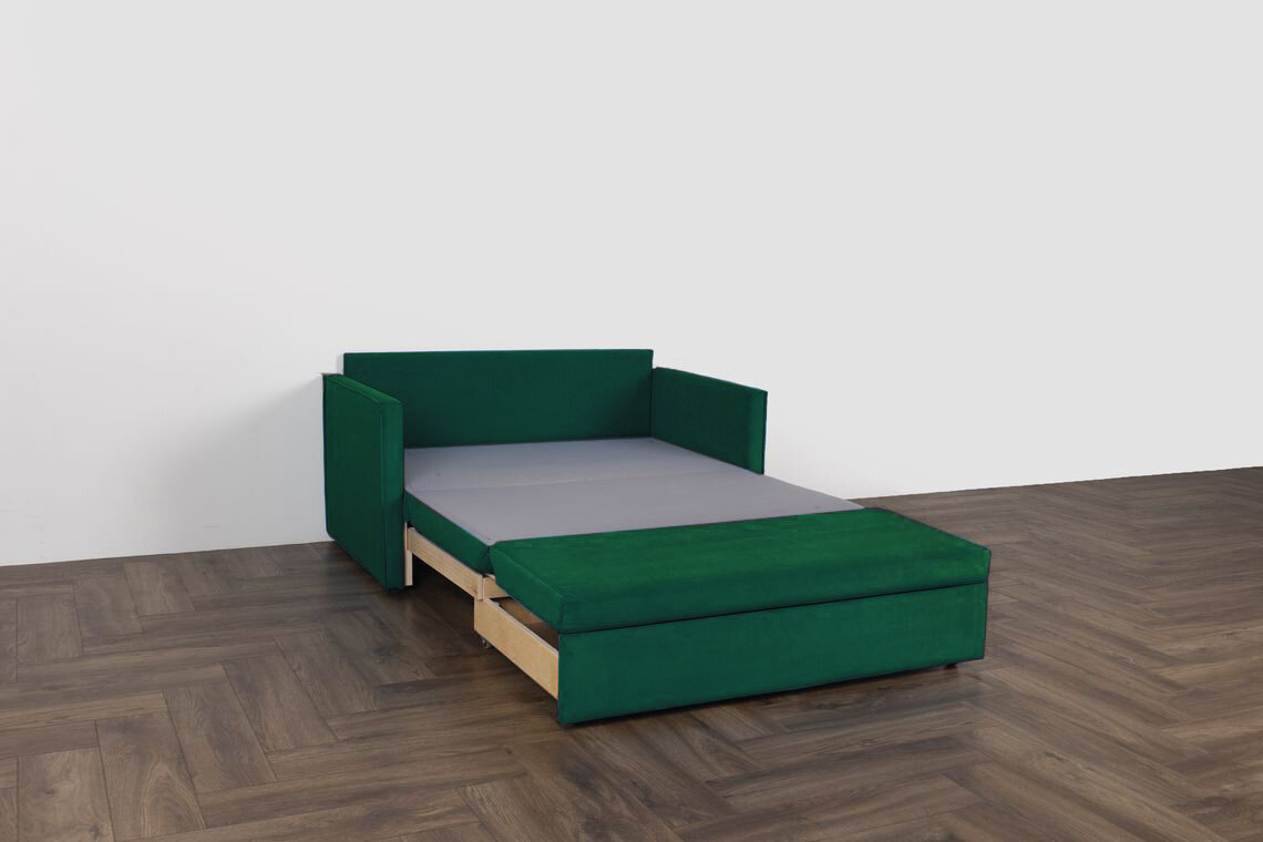 Прямой диван-кровать "Куба" 135x58x77, изумруд, 120x194
