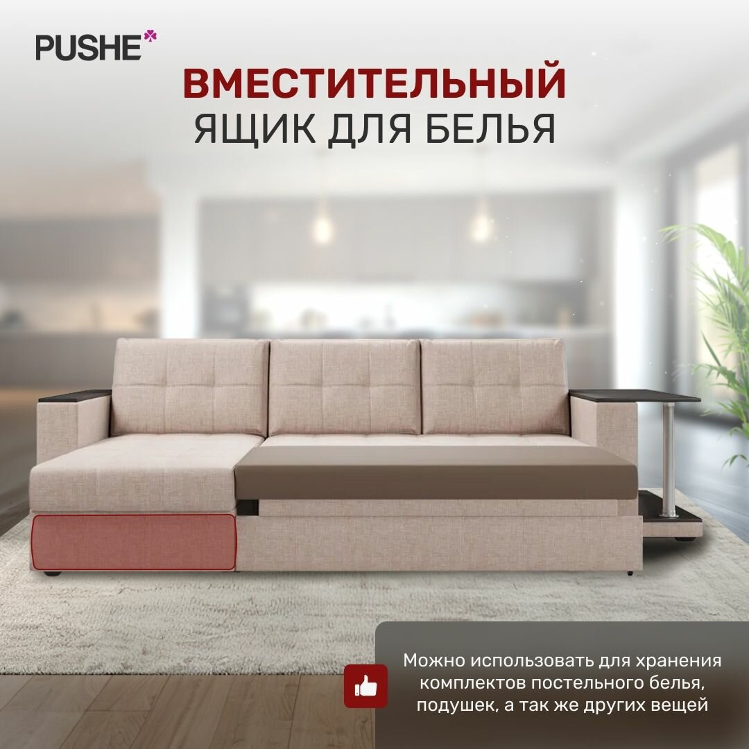 Угловой диван-кровать Атланта Классик со столом 2, 250х154х95 см, механизм Дельфин, с ящиком для белья интересное: