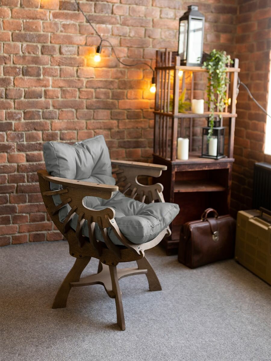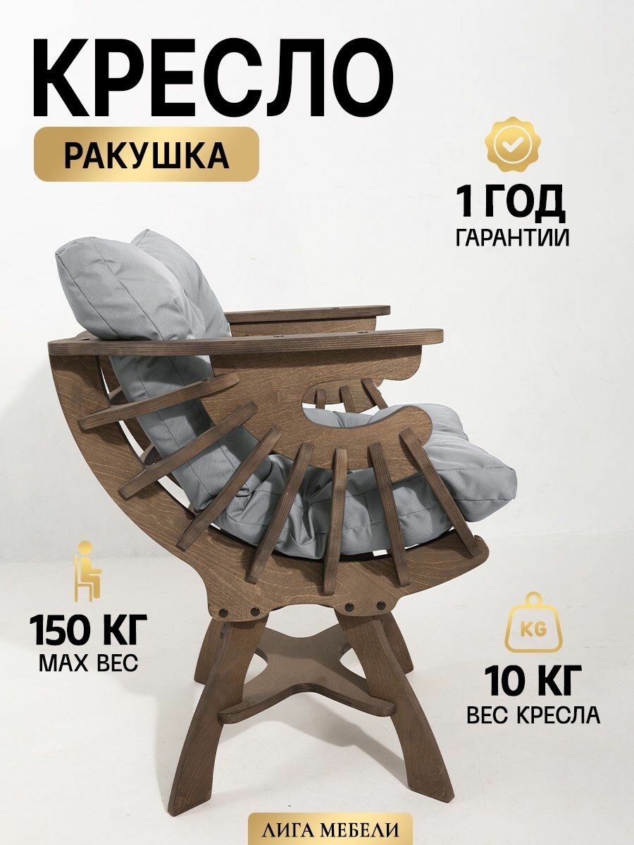 Кресло Лига Мебели Ракушка, дуб, фанерный каркас, с подушкой