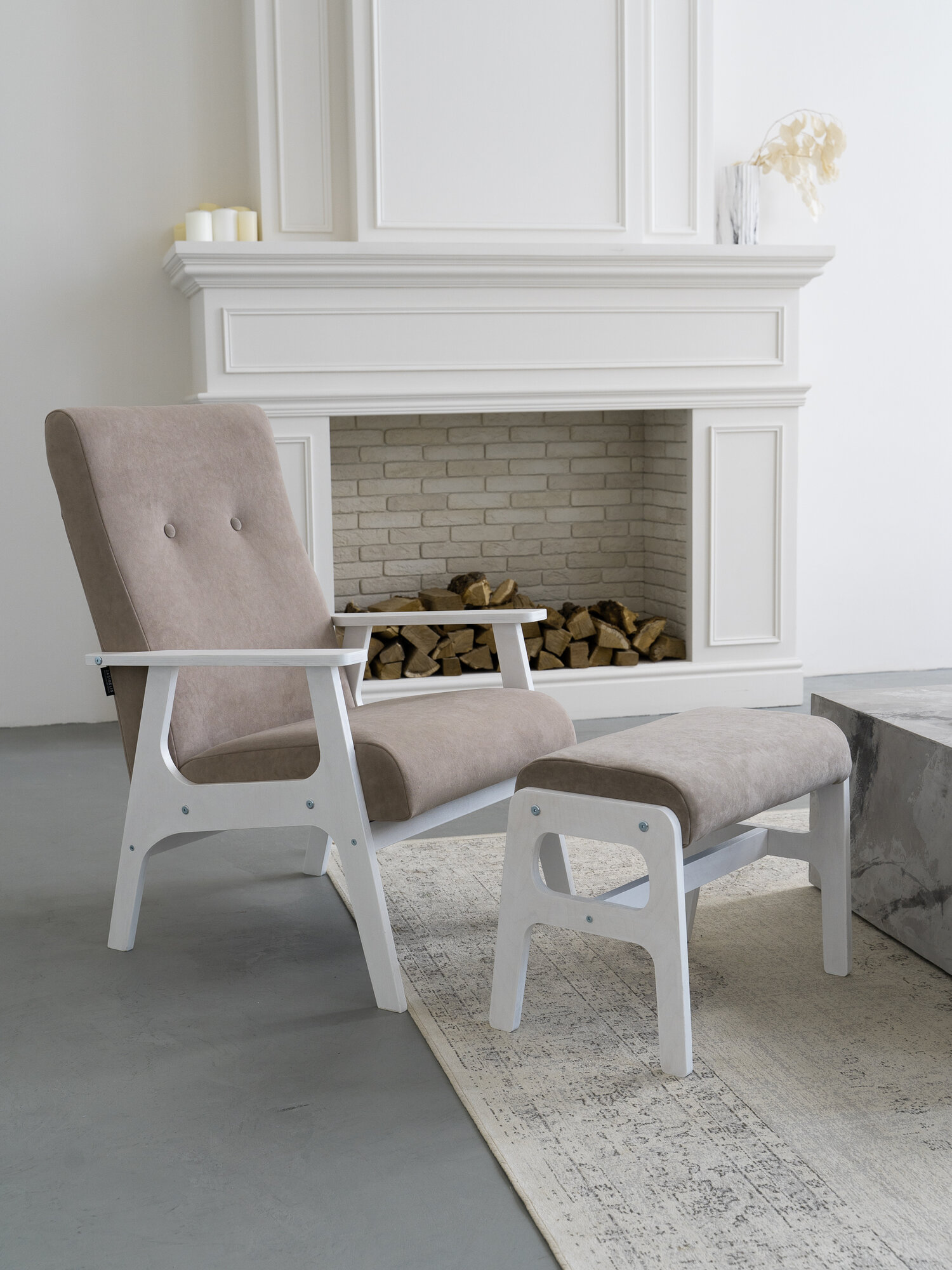 Кресло и пуф для ног CHILL светло-бежевый ноги белое масло